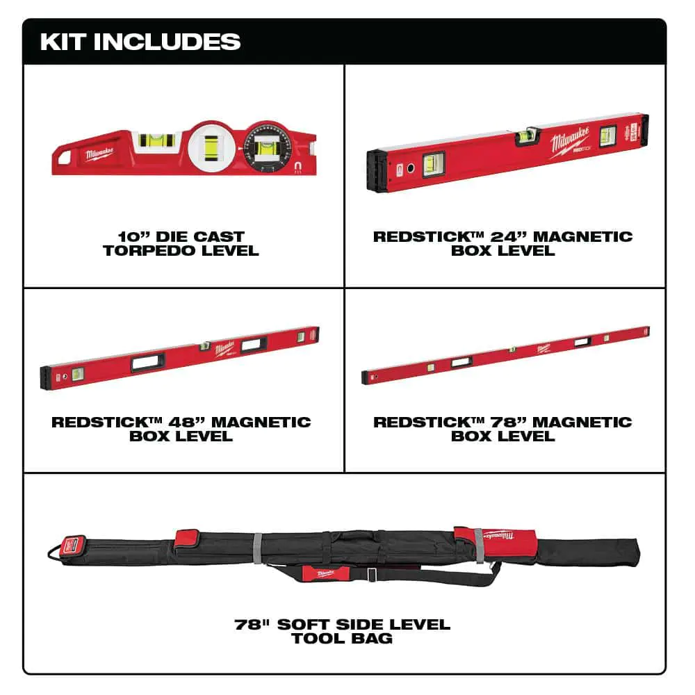 10 in. /24 in. /48 in. /78 in. REDSTICK Magnetic Box and Torpedo Level Set MLBXCM78