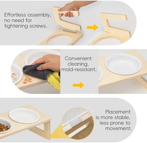 - Simplified Assembly, No Tools Required: The assembly process is a breeze. No need for tools or complicated instructions. Our wooden frame cat bowl set is designed for quick and effortless setup, giving you more time to pamper your feline friend.