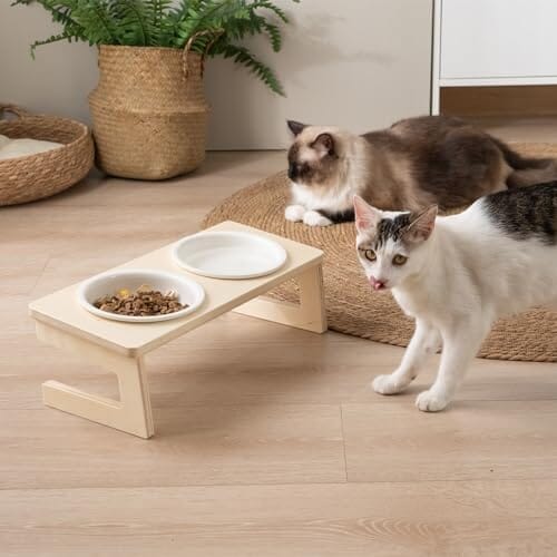 - Elevate Your Cat’s Dining Experience: Elevate your cat’s dining experience with our 10?? tilted wooden stand cat bowl set. Promote a comfortable and natural feeding posture that safeguards your pet’s well-being.