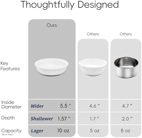 - Tailored for Feline Preferences: Cats have unique eating habits, and our bowls are thoughtfully designed to cater to their needs. The wider 5.5?? and shallower 1.57?? design minimizes whisker fatigue, making mealtime more comfortable and enjoyable. This design also encourages healthy eating habits and reduces the risk of choking or vomiting.