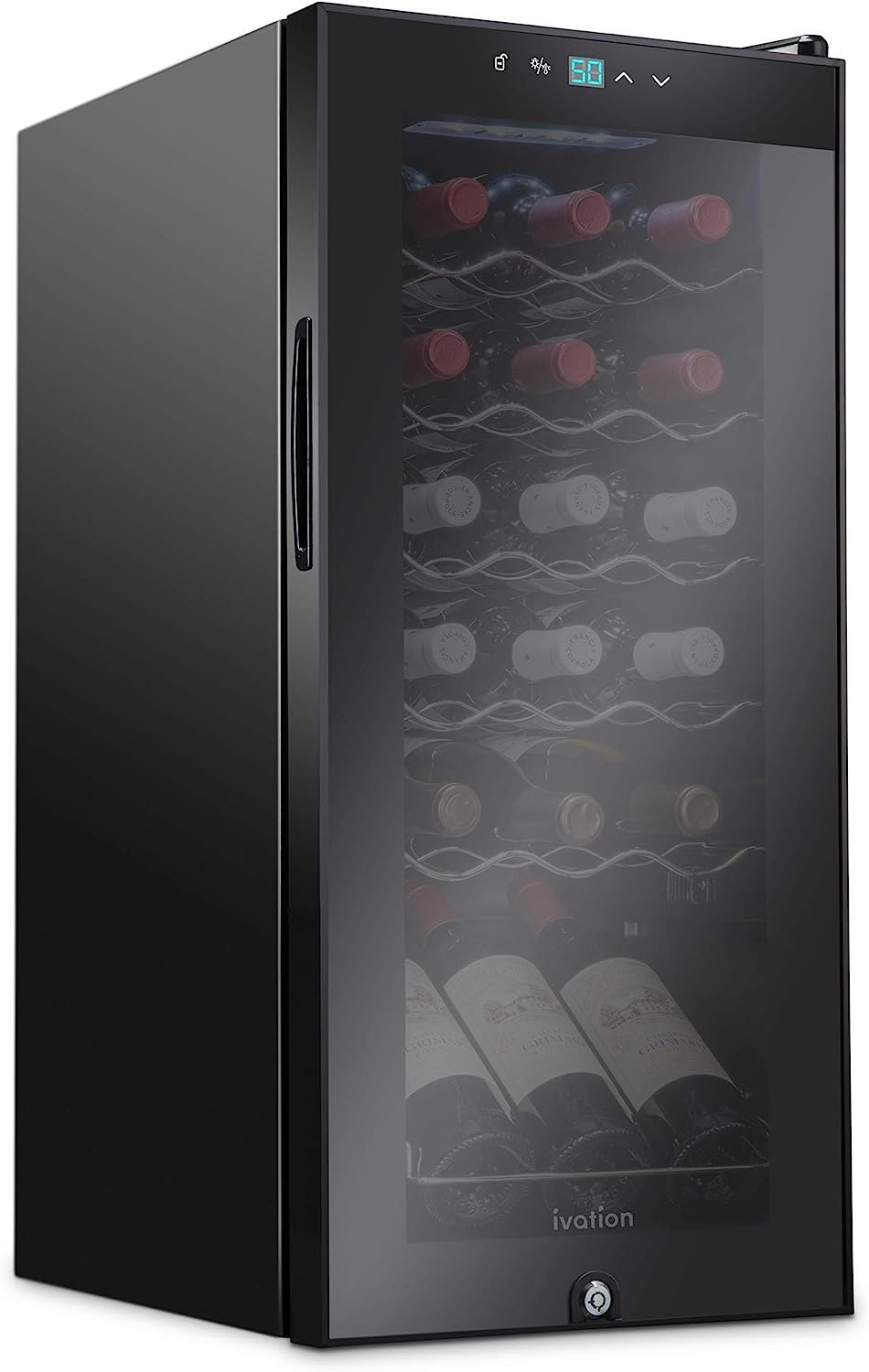 Experience the difference that makes Ivation products unique. Our wine coolers feature premium materials and quality craftsmanship, and include a one-year limited coverage for your peace of mind. This product is the next best thing to having a real wine cellar in your own home. Protect and preserve the flavor and aroma the vintners intended for your collection by keeping harmful UV rays out and maintaining an optimal environment for your wines to age with grace. The advanced compressor cooling system delivers the optimal environment for those special vintages, preserving their unique flavor and delicacy. Ivation wine coolers feature a unique fan system that operates silently while still circulating air evenly throughout the cooler. This ensures that the temperature is uniform throughout the unit. Adjust the temperature and turn on the light by tapping the digital display, then easily lock in settings with the lock button. The bright LCD display lets you view the temperature, even in the dark. A double-paned glass door not only keeps the interior insulated, but also protects your collection from harmful UV light that can damage the tannins and overall flavor of your wine. The reinforced rubbe gasket ensures an airtight seal every time, so conditions inside your wine cooler remain ideal. Rearrange the shelves to accommodate varying bottle sizes. From pinot noir to champagne, you can be sure your collection ages comfortably. Turn on the energy-efficient LED light to gently illuminate your collection. Say goodbye to harsh fluorescent bulbs that fade labels and affect flavor. Ivation wine coolers’ compressor technology ensures temperature is not affected by outside heat sources, and reaches temperatures low enough to house sparkling white wines! Introduce your palate to the wonderful world of artisanal wines! A 100 dollar NakedWines Wine Club voucher is included with every purchase. ? Two Keys Provided for Your Convenience Product Dimensions 17.72??D x 13.58??W x 30.31??H Brand Ivation Capacity 1.8 Cubic Feet Configuration Freezerless Color Black Special Feature Energy Efficient, Refrigerator, Freestanding, Single Zone, 18 Bottle Installation Type Freestanding Number of Doors 1 Defrost System Automatic Voltage 120 Volts Brand Name ?Ivation Model Info ?IVFWCC181LB Item Weight ?43 pounds Product Dimensions ?17.72 x 13.58 x 30.31 inches Item model number ?IVFWCC181LB Efficiency ?Energy Efficiency Capacity ?1.8 Cubic Feet Annual Energy Consumption ?120.03 Kilowatt Hours Per Year Refrigerator Fresh Food Capacity ?1.8 Cubic Feet Bottle Count ?18.00 Noise ?36 dB Installation Type ?Freestanding Part Number ?IVFWCC181LB Form Factor ?Dedicated Special Features ?Energy Efficient, Refrigerator, Freestanding, Single Zone, 18 Bottle Top Style ?smooth top Color ?Black Voltage ?120 Volts Wattage ?95 Defrost ?Automatic Door Hinges ?Right Door Material Type ?Glass Shelf Type ?Wire Shelves ?6 Certification ?DOE, ETL Included Components ?Wine Fridge Batteries Included? ?No Batteries Required? ?No Manufacturer Warranty ?1 Year Limited Manufaturers Warranty Item Weight ?43 Pounds Number Of Doors ?1