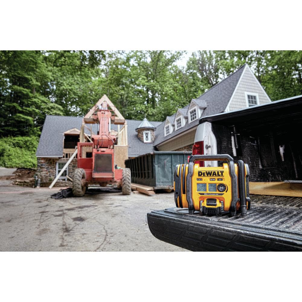 Three power sources for inflation on a jobsite and on the go (20V MAX battery?S? 12V DC?S? or 110V AC)