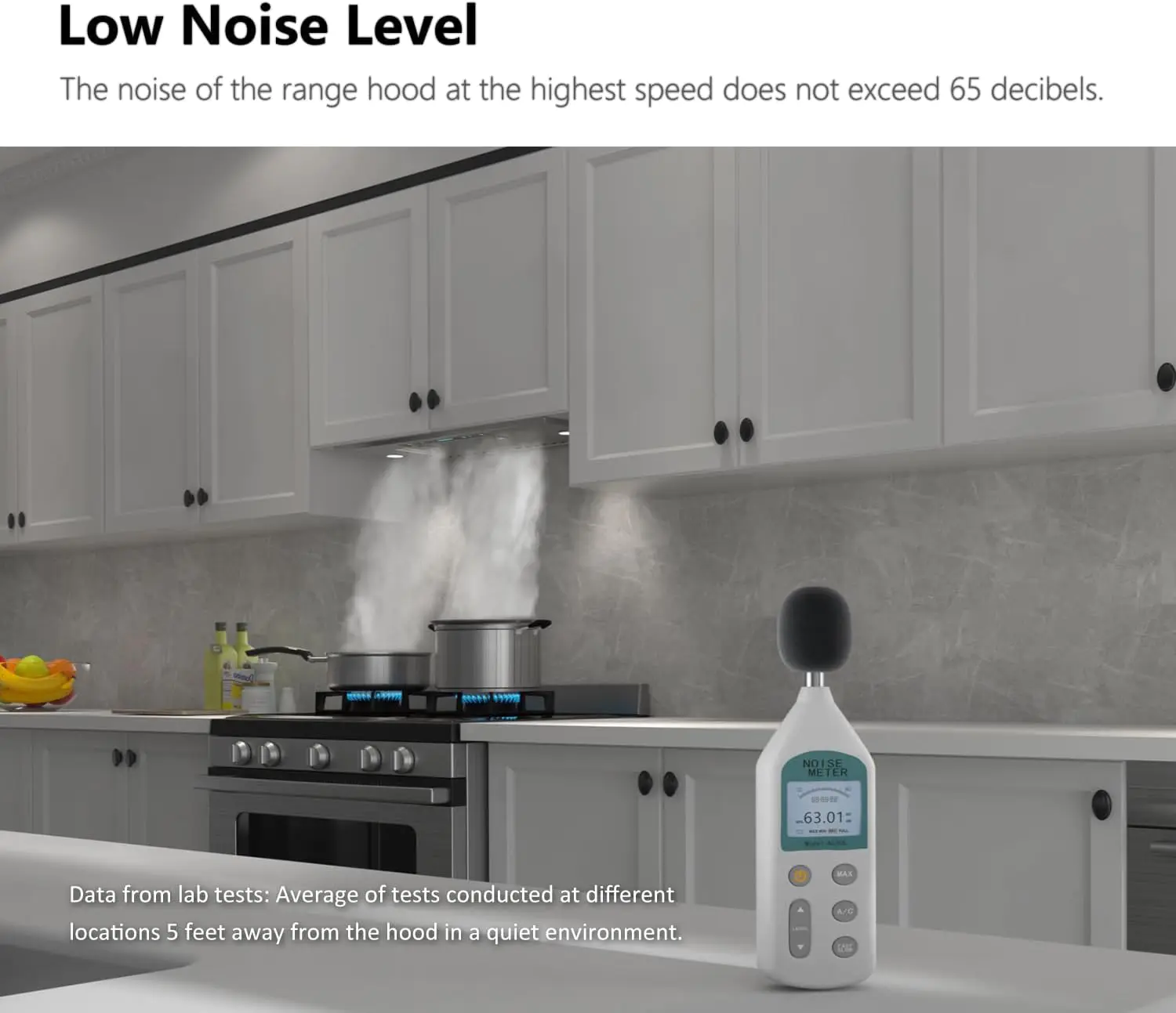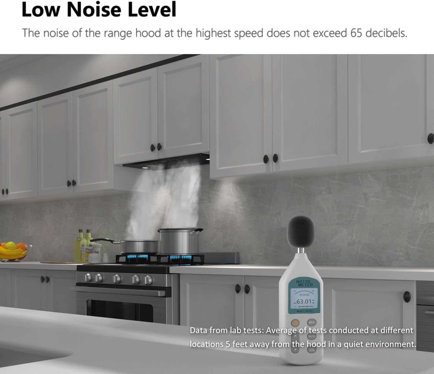 Air Capacity 4 Speeds (300/420/550/900 CFM) Noise Level Max 65 dB Lights 2PCS 3W LED Adjustable Brightness Lights Light Color Temperature Default is 4000K, also available in 6000k (sold separately). Filtration Type 2PCS/30in, 3PCS/36in Dishwasher-Safe, Stainless Steel Baffle Filters Power 110V-125V, 60Hz, 2.5A Vent Size Top Round 6?? Exhaust Method Ducted/Ductless Control Method Touch Button, Gesture Sensor, Remote Control Timer 1-15 Minutes Delay Off Timer Certification ETL & CETL Compliance with US and Canada Safety Standards Accessory List Instruction Manual, Mounting Screws, Remote Control, Charcoal filter, Vent Adapter