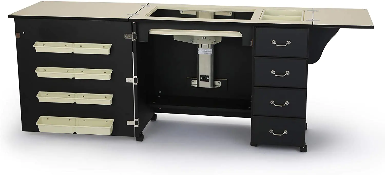 353 Norma Jean Sewing Cabinet for Sturdy Sewing,Cutting,Quilting,and Crafting with Storage and Airlift,Black Finish