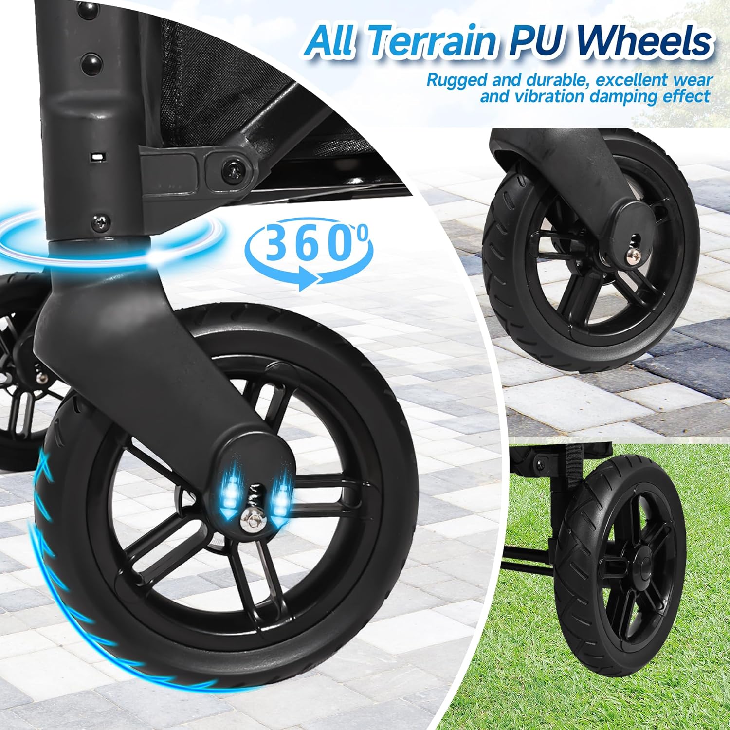 - All Terrain PU Wheels??Unlike other baby wagons, we use polyurethane tires that are safer, more durable, and provide excellent grip, making it the ideal companion for picnics, shopping, beach trips, and other outdoor activities.