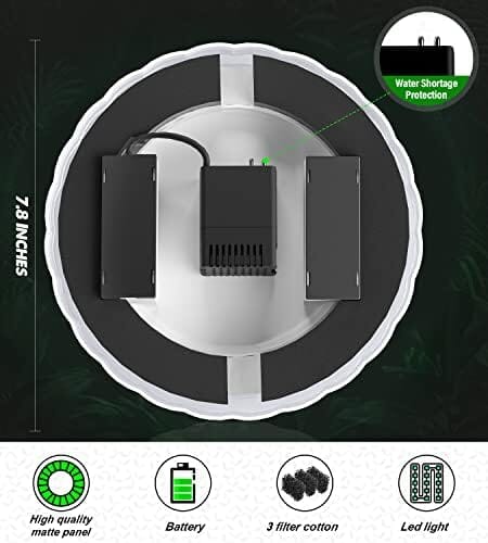 - & : Solar Powered Fountain comes with a water shortage protection system and anti-clogging technology, it will stop working automatically when the shortage of water and the filter cotton is blocked. The built-in upgraded filter cotton in the pump can reduce the clogging of impurities and the cleaning frequency. If the solar fountain stop working, please clean the filter cotton.