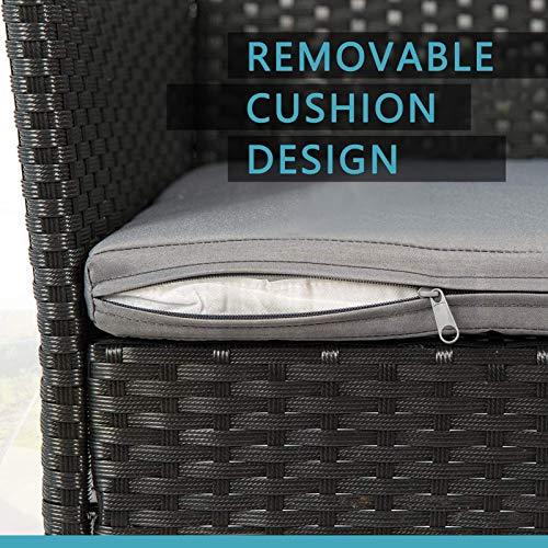 - ??Stylish and Low-maintain??It can last a long time in a low-maintenance way. PE wicker and glass top could be cleaned with a soft cloth to wipe the dust. Cushion covers with quick zipper are removable for cleaning.