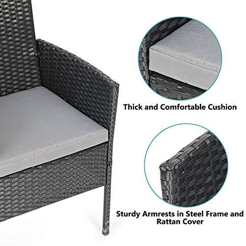 - ??Upgrade Comfy??Lofty sponge padded cushions of 4 chairs provide luxurious lounging experience and more relaxation. The cushions can be attached to the base with clasps to prevent them from sliding. The ottoman can be used to expend seat as well.