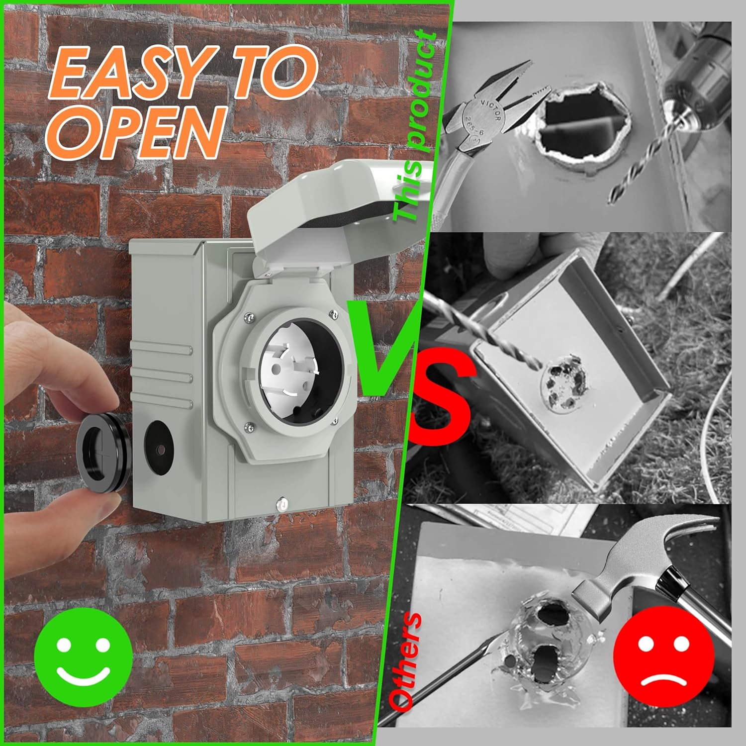 Male 50 Amp; NEMA14-50P Female 50 Amp; NEMA SS2-50R Max Rate 12500 Watt (250V) Power Inlet Box 50 Amp; NEMA SS2-50P