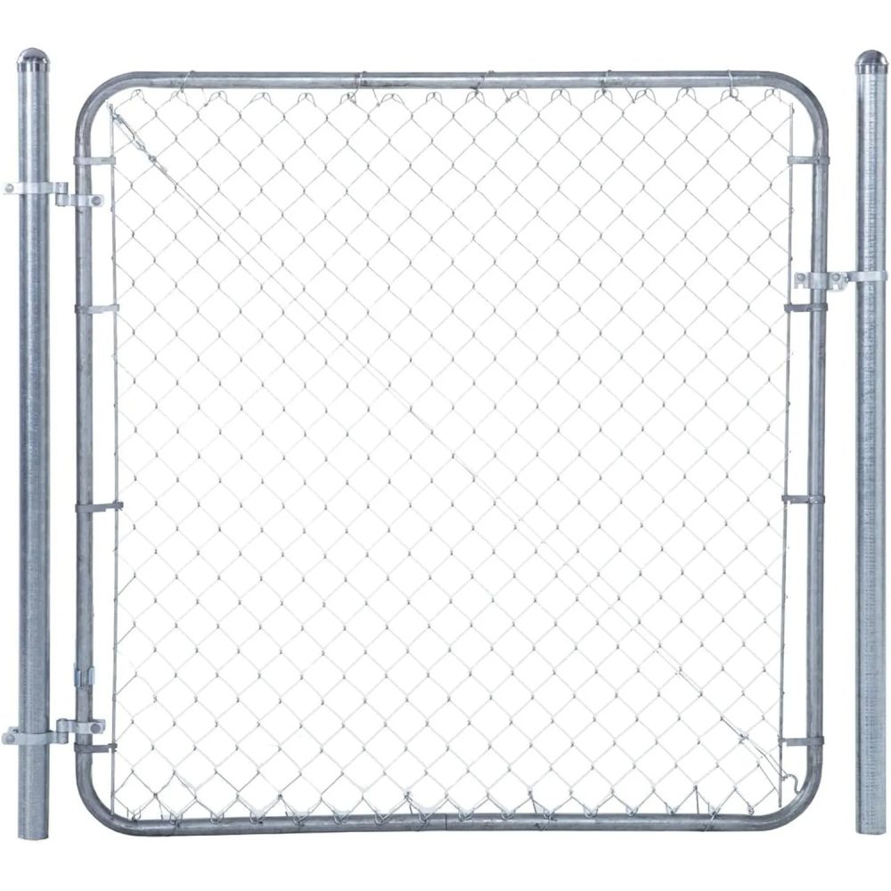 - INCLUSIONS: Gate installation kit includes steel gate frame, powder-coated chain link, lockable latch, gate hinges, and steel wire ties to get you started with your outdoor DIY project