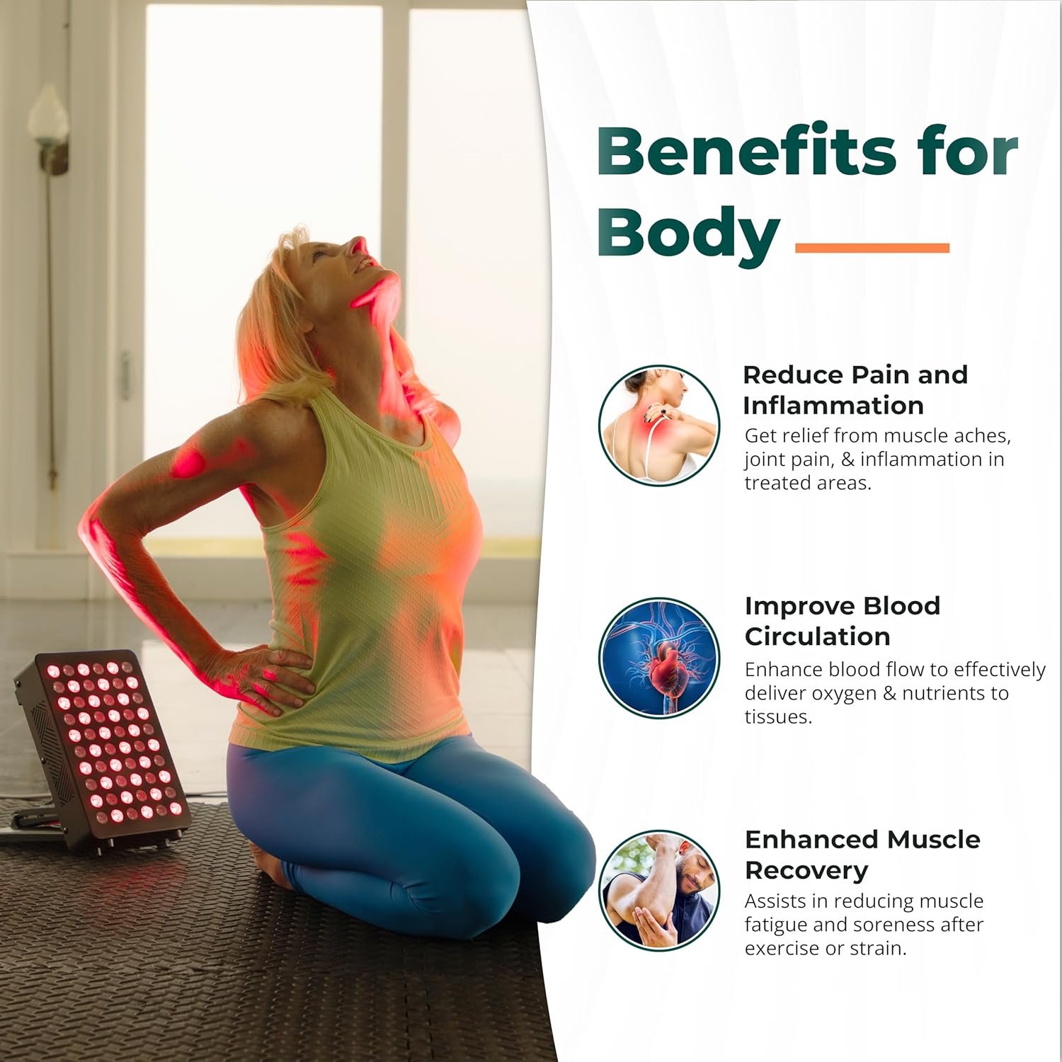 • Your Personal Wellness Companion:Say goodbye to space constraints and enjoy hassle-free wellness with our space-saving, red and near infrared light therapy panel. Perfect for those with limited room, frequent movers, or anyone seeking on-the-spot relief, our compact and portable design ensures you can effortlessly incorporate led light therapy for face and body into your lifestyle, no matter where you are.