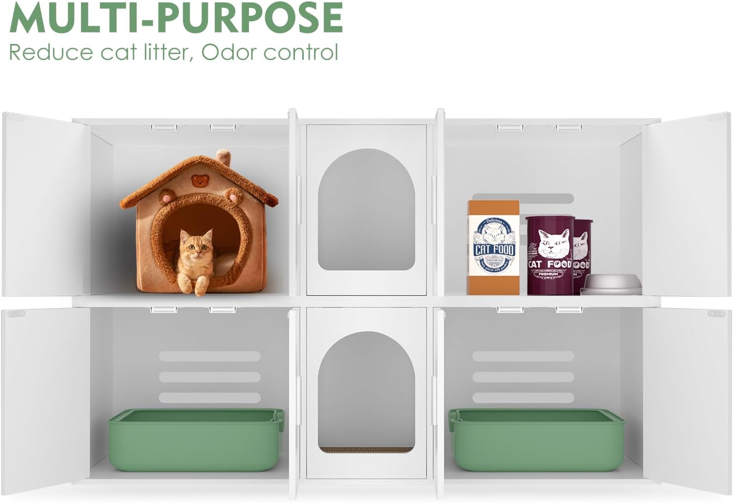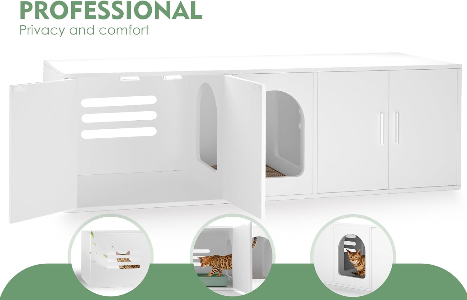 Amunrbrek Cat Litter Box Enclosure Furniture with Double Room,White