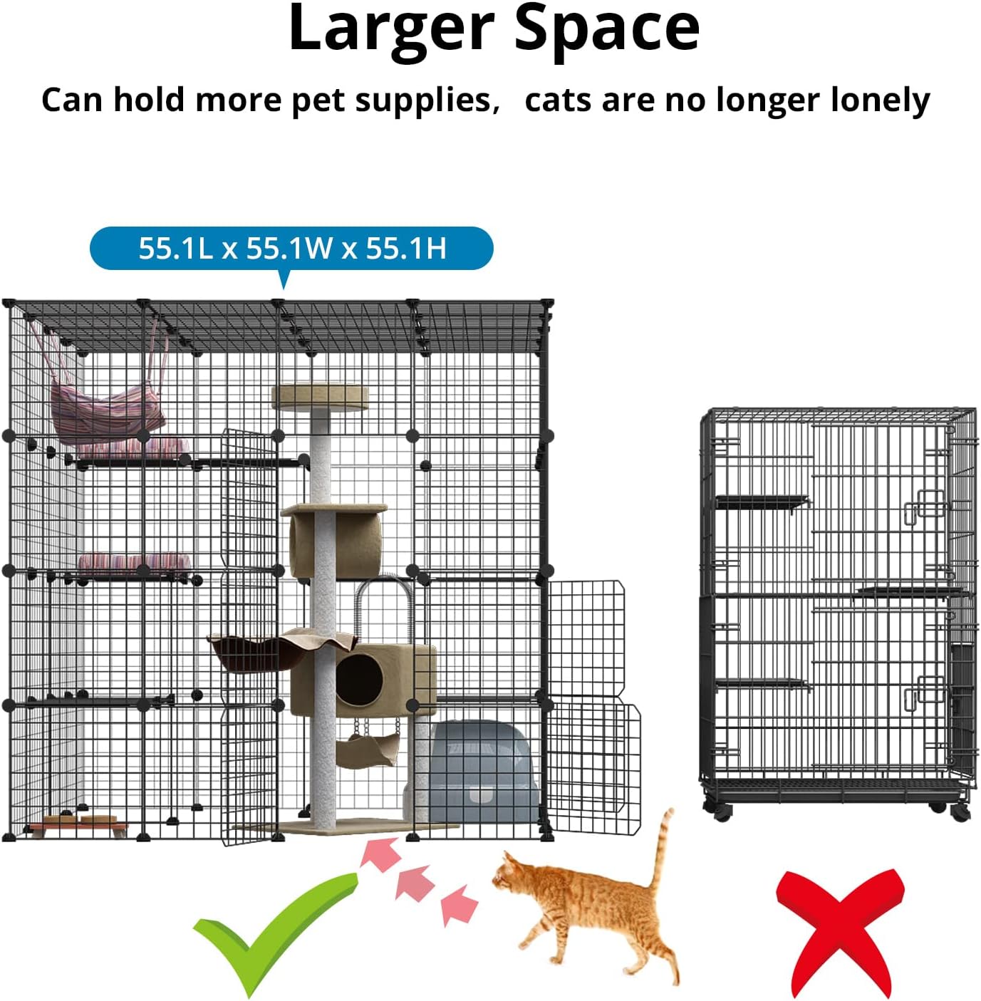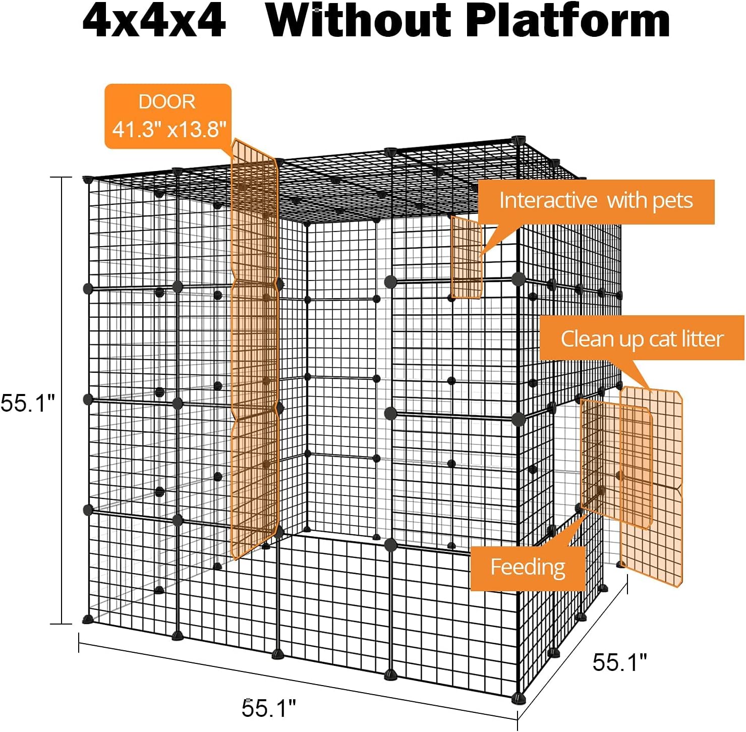 - ??Plenty of Room?? Cat Playpen provides a large hangout area for your cat ??Cat cage measures 55L x 55W x 55H Inch (Without platform) & is ideal for 1 to 4 cats