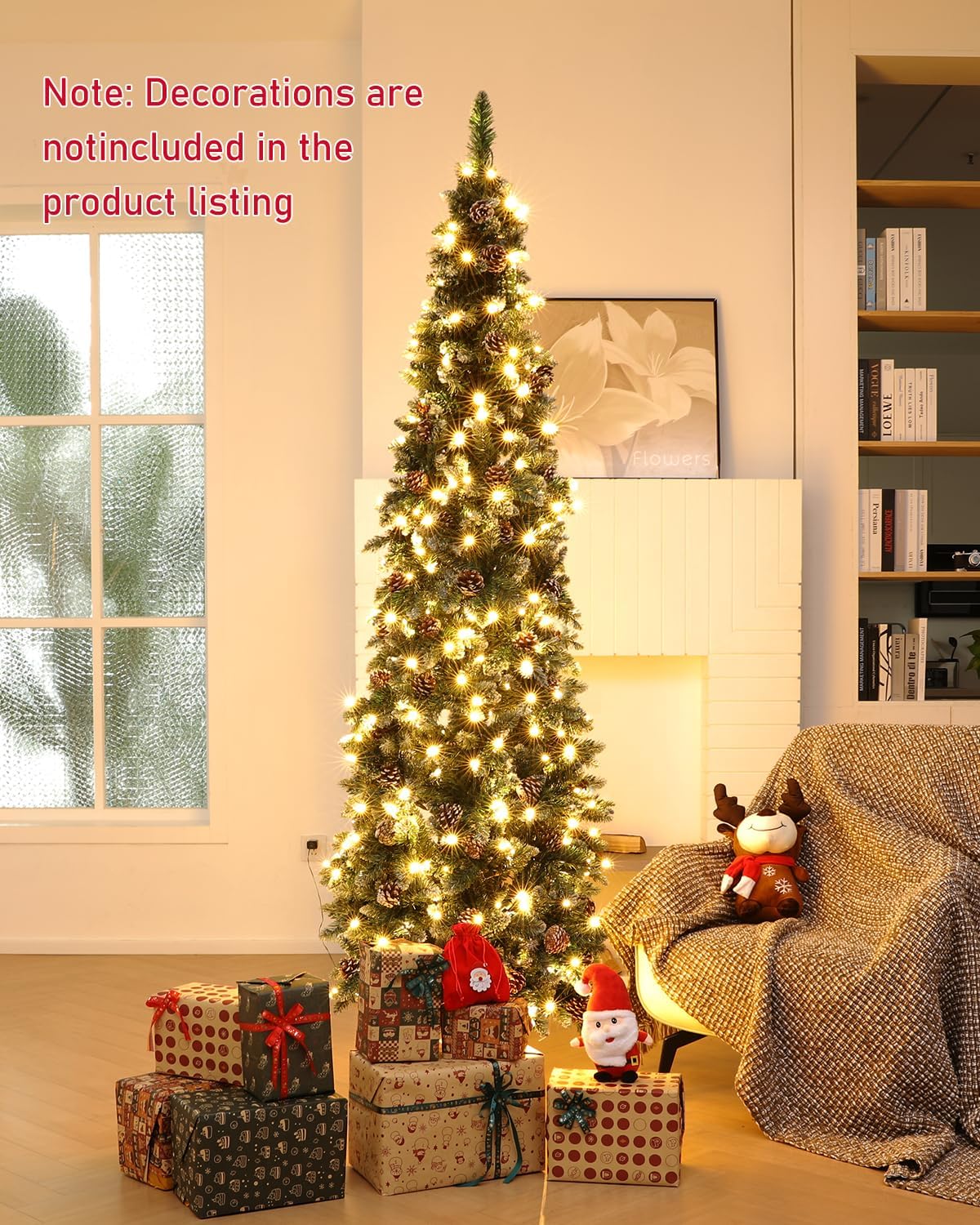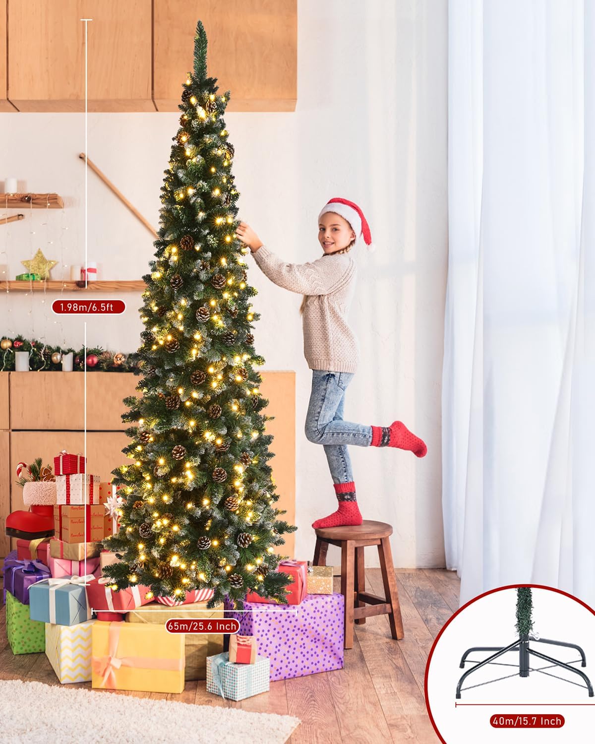 AORESAC 6.5ft Pre-Lit Pencil Christmas Tree for Home,Office,Party Decoration