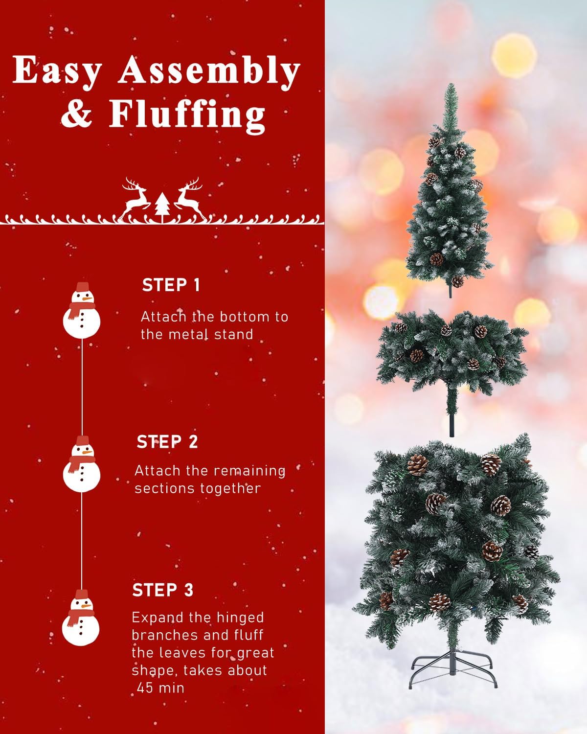 - Easy to Assemble and Storage: The pre-attached hinged branches allow you to assemble the tree in just 3 steps, set aside 45-60 minutes to properly shape the tree by peeling back the branches and pulling the tips apart. After the Christmas party, you can store this space-saving tree in a small place.