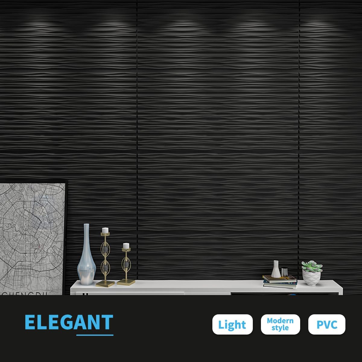 Art3d Black Large PVC 3D Textured Wavy Wall Panels Decorative,Pack of 6 Tiles