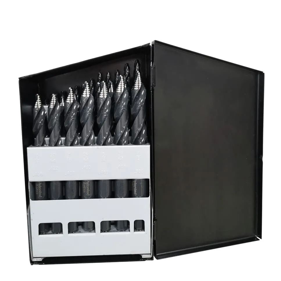 - Spiral fluted PATENTED stepped-tip drill bits that simply outperform every conventional drill bit design in nearly all materials