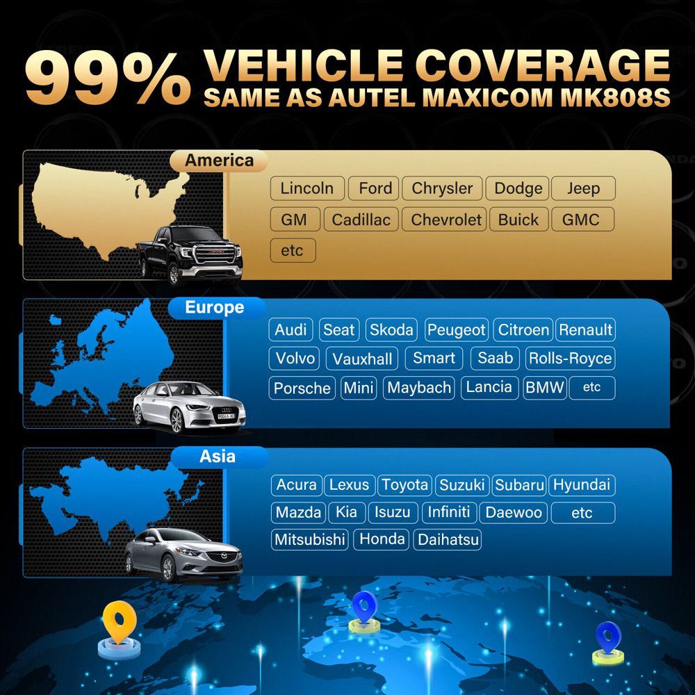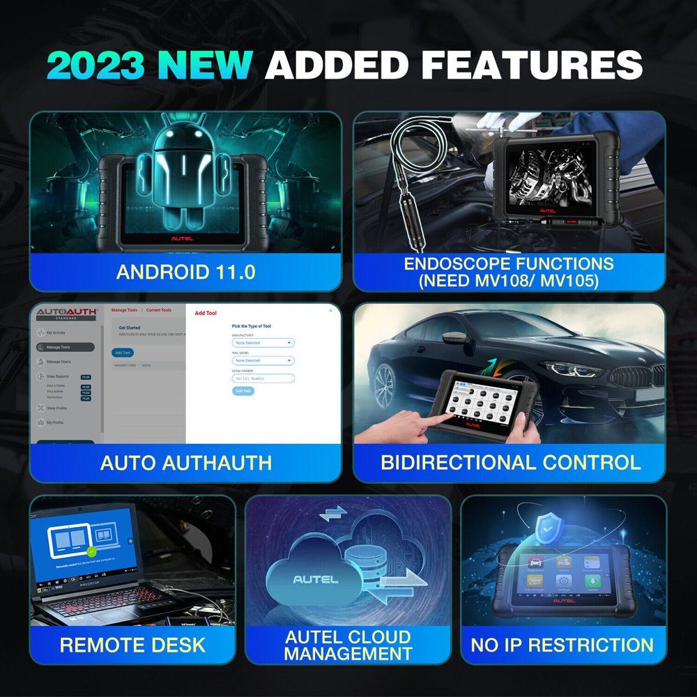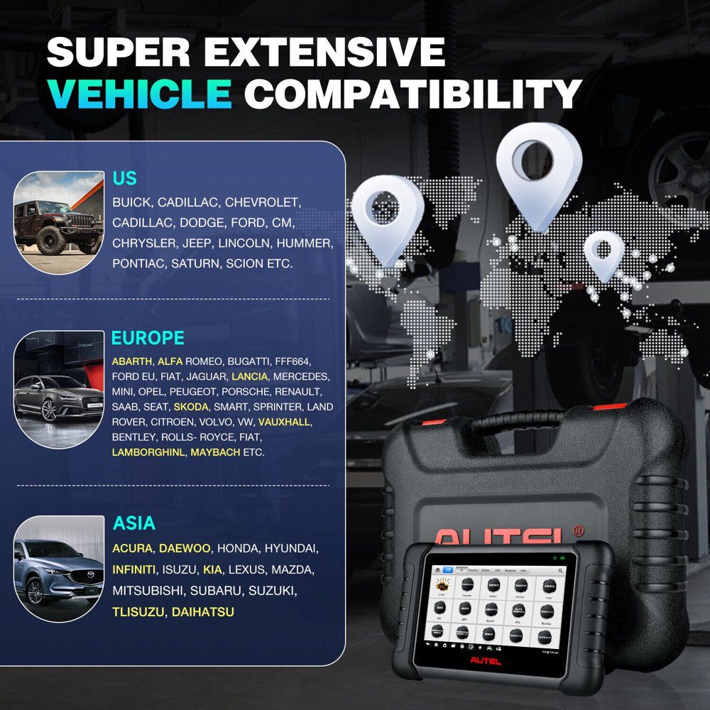 Why Choose Autel MK808S? ? The 2023 newest addition to the Autel MaxiCOM line. ? Upgraded from the top-selling diagnostic tool Autel MK808, yet featuring 5X faster processor, the latest Android 11.0, 4GB of RAM, dual 2.4&5GHz Wi-Fi, and much better diagnostic response; designed to economize diagnostic effort while delivering accuracy of identifying faults. ? Full car coverage for American, Asian and European vehicle makes and models, till 2022. ? NO regional lockout (NO IP restriction), fully capable to use in any country without the restrictions of using features across different world markets. ? Bi-directional control (active test) of vehicle-specific components (relays, injectors, coils, solenoids valves, actuators, etc.) for testing without manual control; deliver fast results in 5 minutes. ? 28+ commonly-used resets & relearns, almost cover all basic, special, and many advanced functions that can handle 99% of daily car maintenance in busy workshops. See details on page. ? All on-board systems AutoVIN & AutoScan (2006+) automatically scans all available on-board ECUs & modules with only one tap; gets deeper to read, understand, and clear OE-specific codes. ? 13+ multi-language packs can be installed that enable you to translate the data in your local language: EN, T-CN, FR, DE, ES, PT, NL, PL, SE, KR, JP, RU, IT, and more. ? Can work with endoscope MV105/MV108 to inspect hard-to-reach areas. ? 1-year free software update to get more supported cars and more features. Easy one-touch wireless upgrade via dual 2.4&5GHz Wi-Fi connection. ? [OE-Level Active Test]?Autel MK808S features the most-demanded active tests, only found on bi-directional scan tools for professionals to drive the actuators of ABS, window, door, solenoid valve, wiper, headlight, etc. to perform a specific move. Spot problems without manual control; deliver fast results in 5 minutes. This is very helpful for DIYers & mechanics to smooth workflow, and quickly find if a system or component goes well. ? [28+ Reset & Relearn Services]?Upgraded from Autel MK808 scanner, Autel MK808s has more tool-guided service functions (28+) accessible for your more-effective maintenance: not just typical Oil reset/SAS/EPB/BMS/DP-F/Throttle/ABS services, also newly-added SUS/ADBLUE/EGR/NOX/Headlamp resets. You can use these popular functions to recalibrate or configure components after making repairs or replacements. ? [All System Scan & 2022 Car Coverage]?This Autel scanner opens a comprehensive look at all systems found in 1996-2022 cars: PCM/ECM/EPS/PDM/BCM/TPM/SCCM/RADIO/etc. to read, clear all types of DTCs, obtain ECU info, and display their live data. For many 2006+ cars, it has AutoVin & AutoScan to check VIN data and systems automatically. And thanks to its expanded coverage for most recent vehicles, you don??t need to buy scan tools separately to handle modern cars. ? [5X Faster Operation]?The latest Android 11.0 OS powered by extraordinary 4-core, 1.8GHz processor delivers 5X faster, seamless scans; it won??t be lagging when you need it most! 4G + 64G memory is designed for the ideal management of massive clients?? data files. Brightly-lit 7?? touchscreen (1024*600) is clear, crisp and sensitive to your every gesture, with dual 2.4GHz/5GHz Wi-Fi modules allowing you to work wirelessly from anywhere in the service bay. ? [AutoAuth & MV105/MV108 Supported & 13 Languages]?Now you??ll get full access to 2018+ FCA SGW-equipped vehicles to perform clear codes, bi-directional active tests, actuations, relearns, IMMO key programming (pull PIN & write) and ADAS calibration (provide procedures), through built-in AutoAuth service. This bidirectional scan tool can also pair with endoscope Autel MV105/MV108 to inspect hard-to-reach confined areas. 13+ Languages Menu: EN, T-CN, FR, DE, ES, PT, NL, PL, SE, KR, JP, RU, IT, and more. ? [No-Worry Purchase]?1-year free software upgrades and 1-year quality backup.