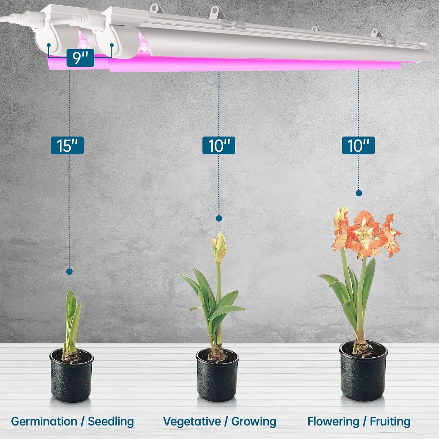 - Easy Installation: The package have 3pcs power cords. You could link up to 6 led grow light strips in a series by 48 inches connecting cords