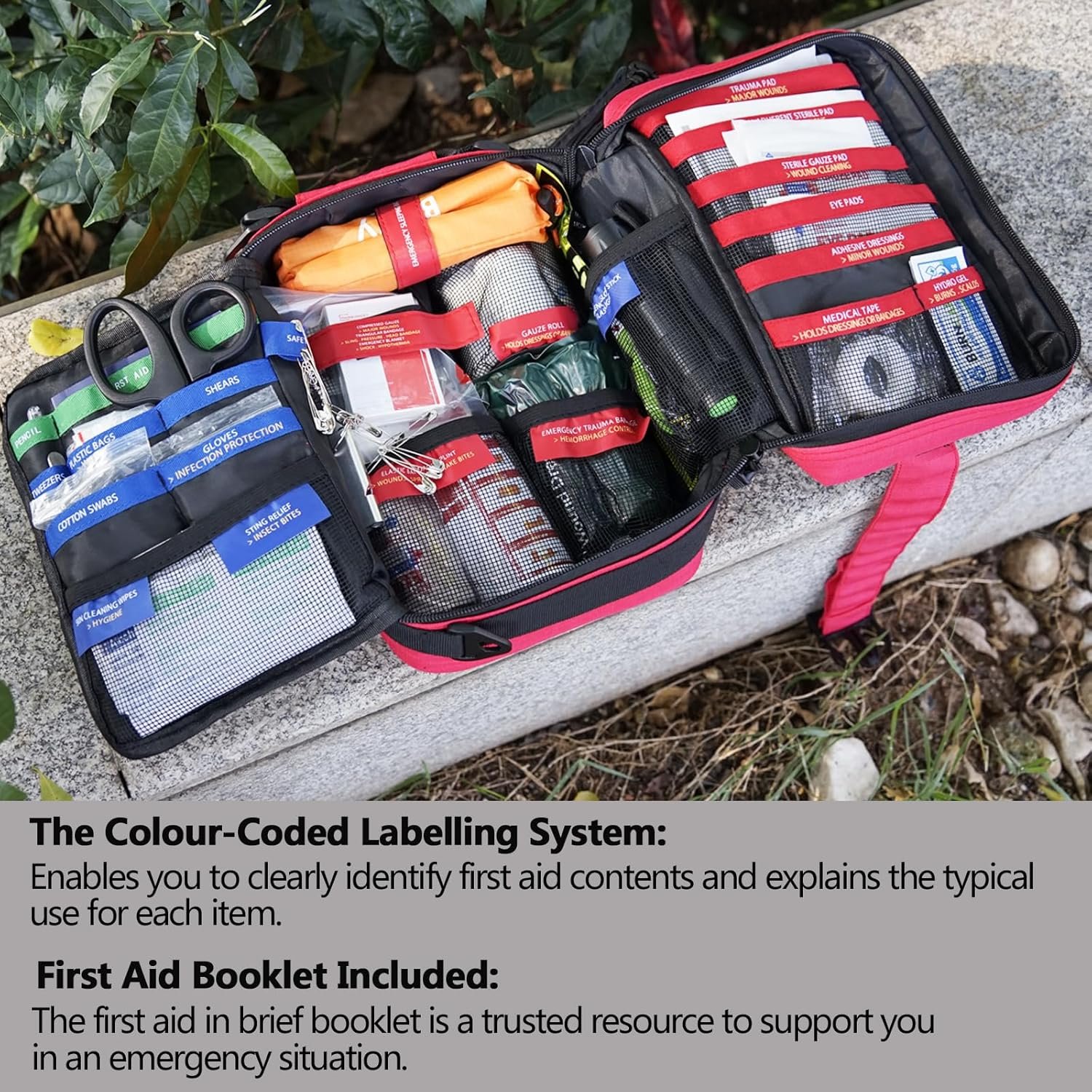 - ??Labelled, Compartments, Well Organized ??Colorful-coded labelled compartments system enables you to quickly identify first aid contents and explains the typical use for each item. Well organized make it easy to find what you need in the case of an emergency.