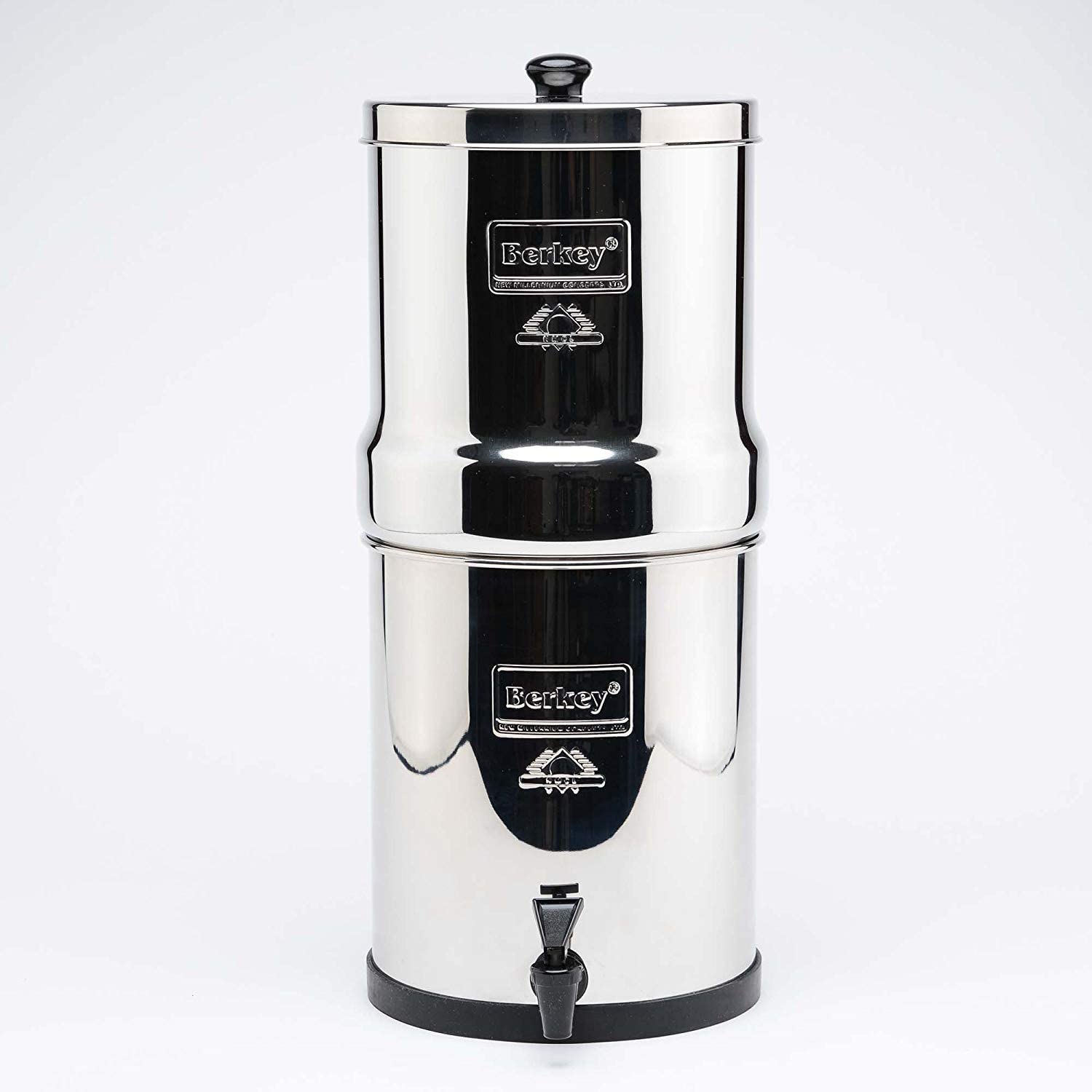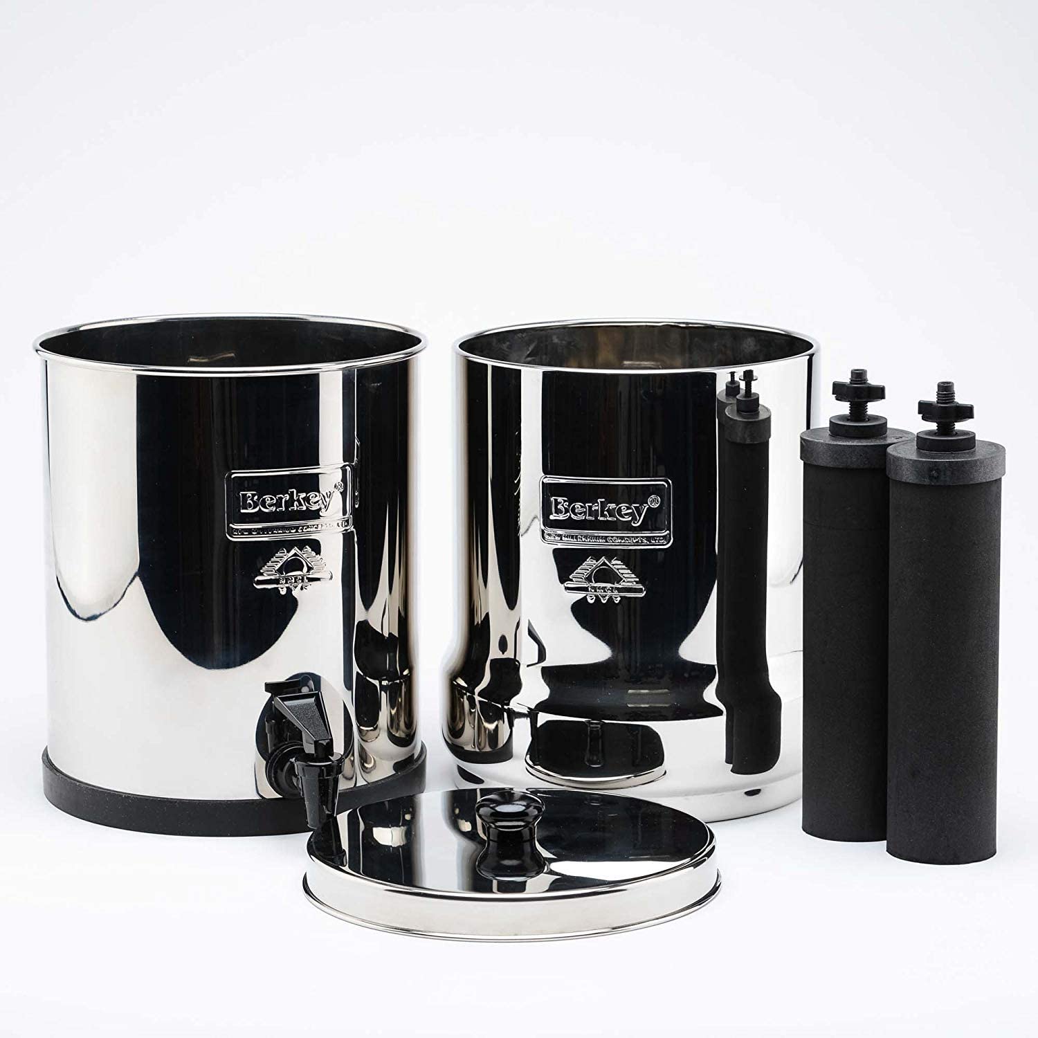 Includes Big Berkey stainless steel housing (Upper. Lower. Lid and spigot etc.). 2 Black Berkey Filters. and 2 Fluoride Elements.