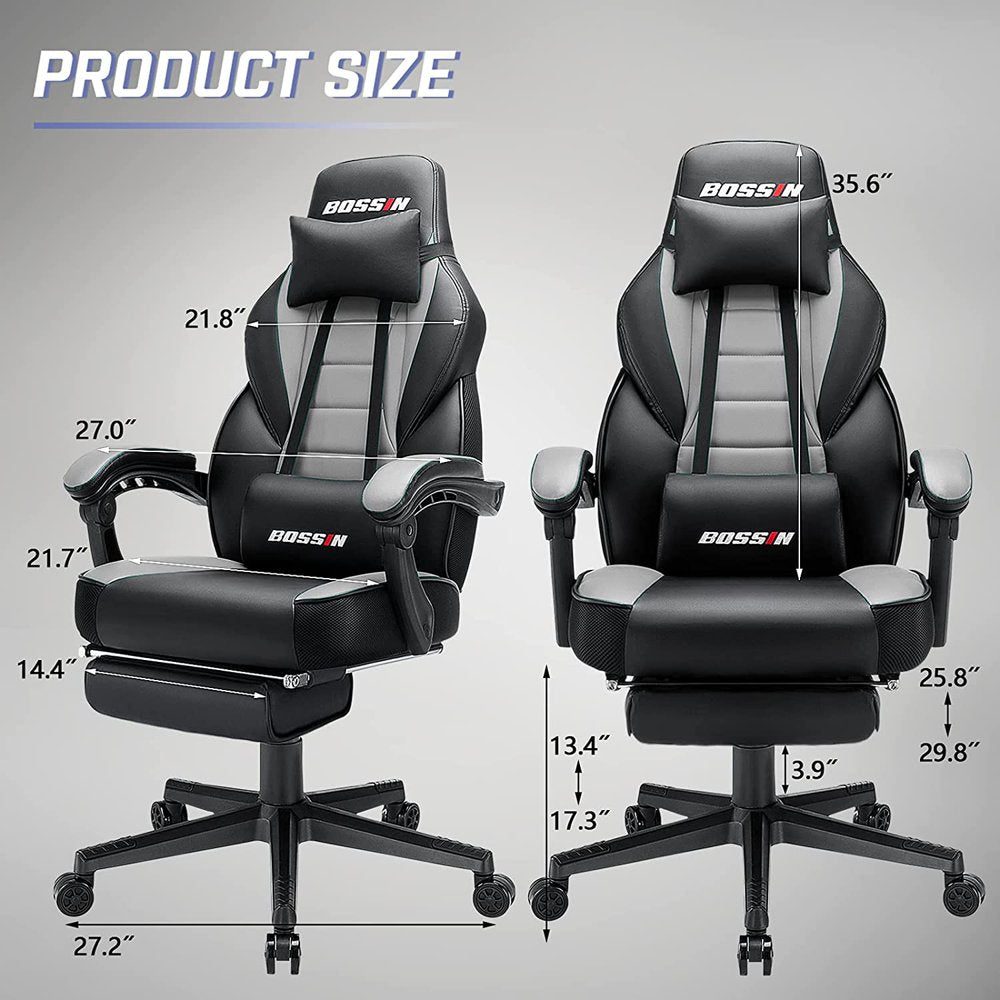 BOSSIN Gaming Chairs with Footrest,Big and Tall Gamer Chair with Headrest and Lumbar Support