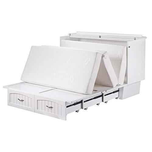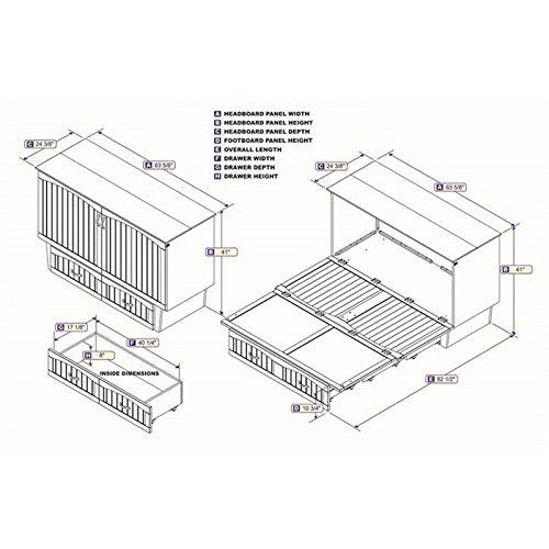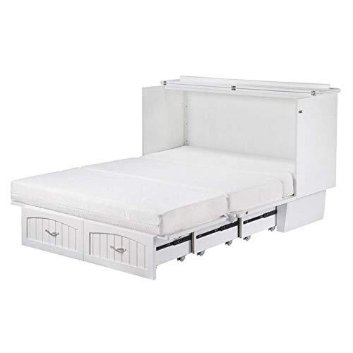 Details: Skip the guest room. buy a Murphy Bed! A comfortable queen-sized bed. tucked away in an elegant space saving chest! Our Murphy Bed Chest provides guest sleeping space without sacrificing style. The compact chest includes a built in-charging station and a CoolSoft queen size folding premium memory foam mattress for a cool night’s sleep.Features:Finish: WhiteMaterials: Solid HardwoodEasy to use space saving designSatin finished hardwareEasy to assemble cabinet and fully assembled baseCoolSoft queen size folding premium memory foam mattressMattress pull handles for easy opening and closingExtra large storage drawerDurable 9 ft. cord. grounded. UL listed. 16 gauge. 3 wireSpecifications:Overall Product Dimensions: 41?? H x 63.75?? W x 24.5?? ?C 82.5?? DProduct Weight: 365.5 lbsDrawer Dimensions: 8?? H x 40.25?? W x 17.13?? DMattress Height: 6??5?? of highly resilient support foam. 1?? of CoolSoft Gel Infused Memory Foam2 Built in 5V. 2.1 amp USB Charging Ports
