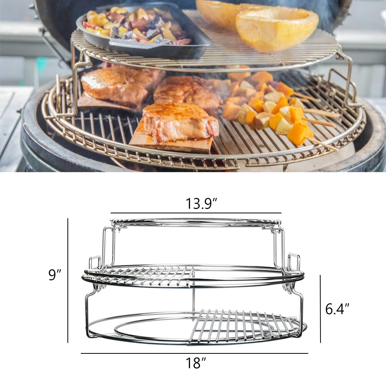 - Perfect for Big Green Egg: This 3 Tier 5 Piece Replacement Kit for EGGspander is the ultimate tool for unleashing the true power of your Egg, it is such a good addition to the BGE family, taking advantage of both vertical and horizontal space