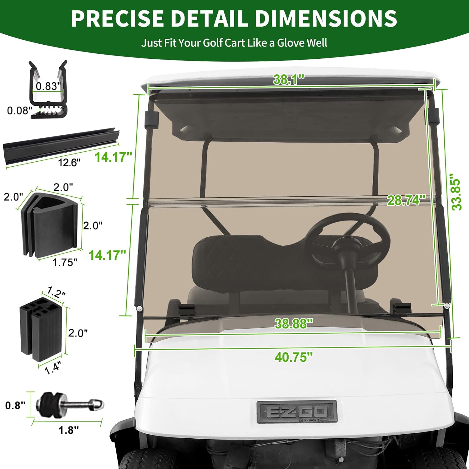 - 3/16″(5MM) Durable Acrylic: Made of high-density shatter and crack-resistant acrylic material, which is thicker than ordinary ez go golf cart windshield, have high strength impact resistance and durability.