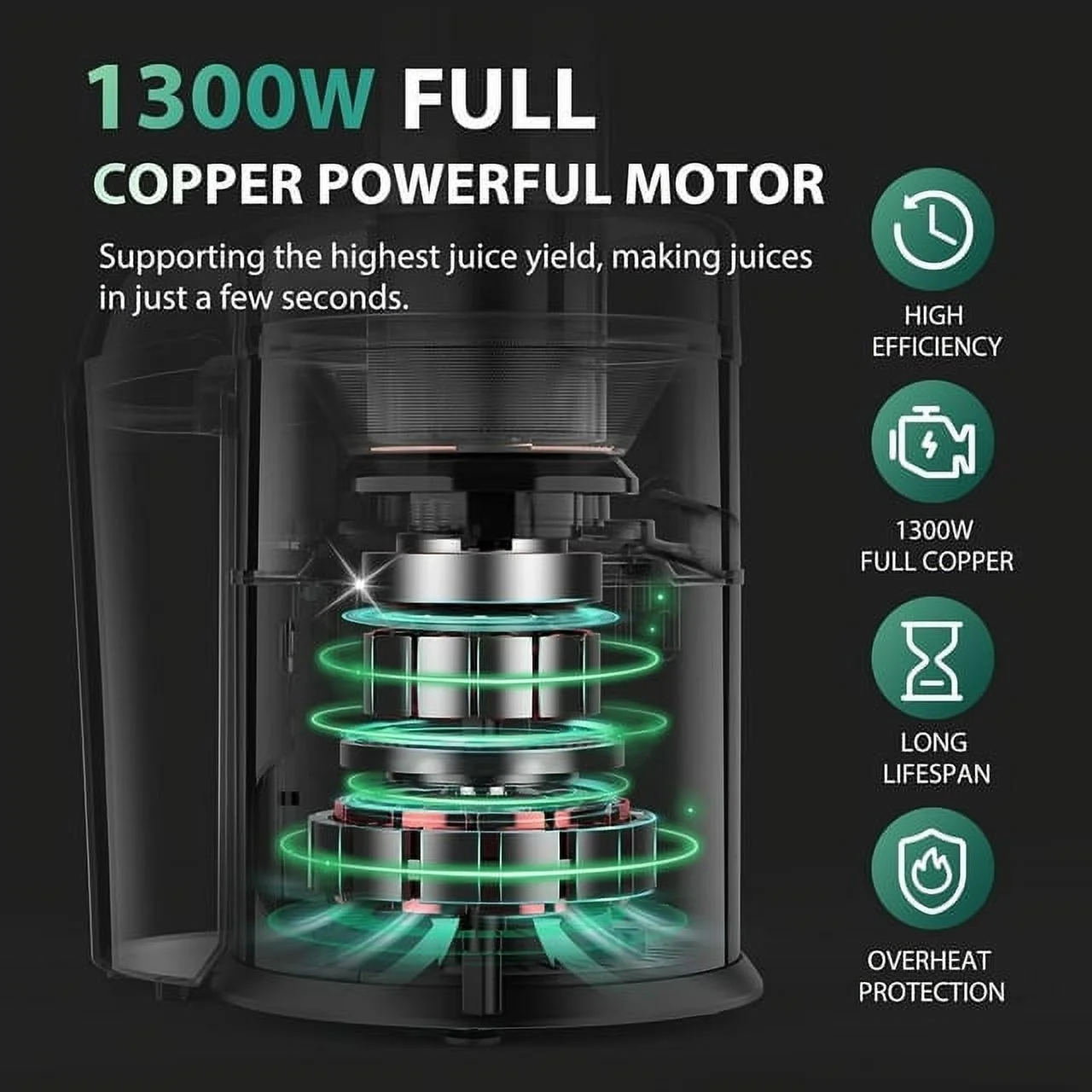 ??Safety First??Our safety locking arm ensures that the cover stays securely in place during operation, while also ensuring that all parts are properly connected. The overload protection system will automatically shut down the motor if the temperature exceeds 105 degrees. We are dedicated to providing our customers with the most valuable products on the market. ??Fine Detail Manufacturing??The anti-drip discharge spout prevents juice from dripping down and causing cleaning trouble, while the non-slip base design keeps the juicer stable during juicing. And with a brush included, cleaning the blade is a breeze. All these details are meant to provide you with an excellent juicing experience. ??Family Juice, no prep time required??This centrifugal juicer’s fine detail manufacturing makes juicing even easier. The 3-inch wide feed chuteeliminates the need to chop fruits or vegetables. The 37-oz juice cup with a built-in foam filter ensures that you and your family enjoy cups of silky juice. ??Food-Grade Filter??The width of the extraction blade is an important factor in juicing efficiency. The upgraded three-layer mesh filter that is equipped with a corrosion-resistant 304 stainless steel food-grade blade can catch all fruit pieces and ensure an 85% high juice yield. Plus, they preserve the natural taste and nutrients of the juice.