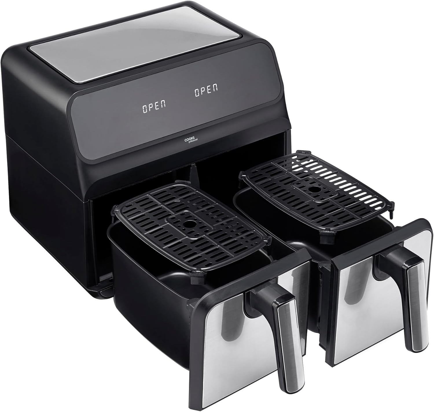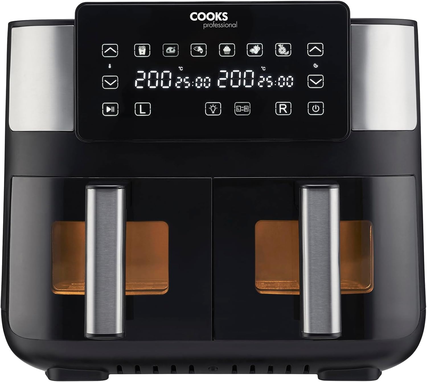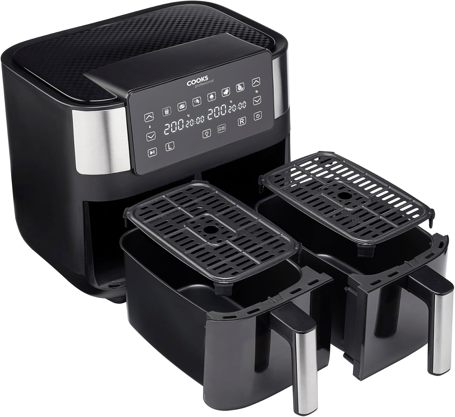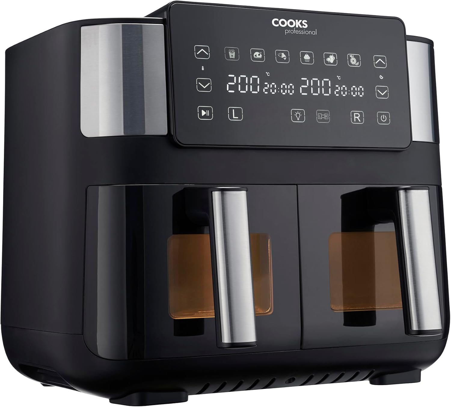 Cooks Professional 8 Litre Dual Digital Air Fryer with Double Twin Basket | Stainless Steel Energy Saving Instant Fryer with Double Drawers & Preset Functions | 8L Capacity (XL) | Black