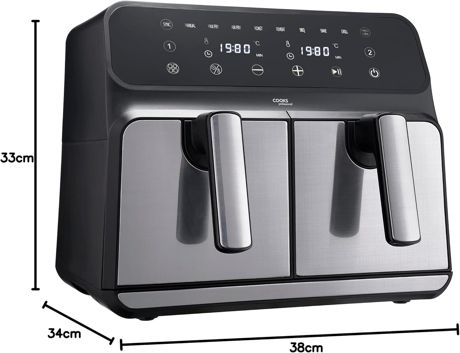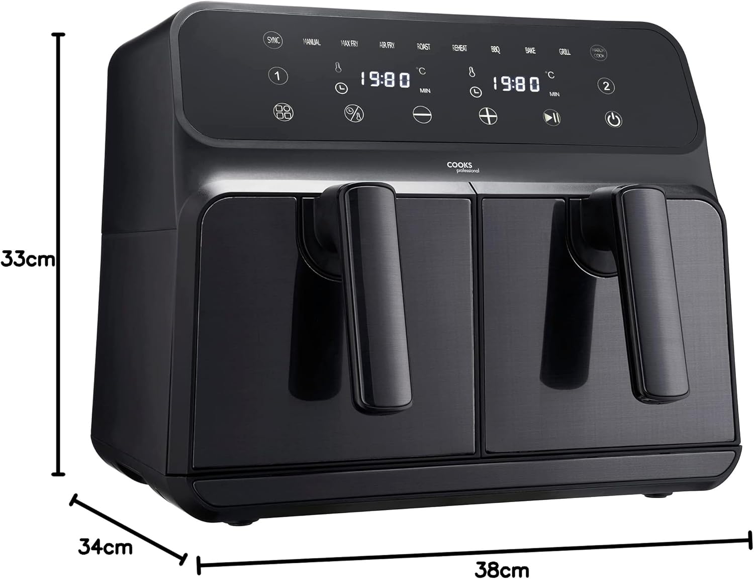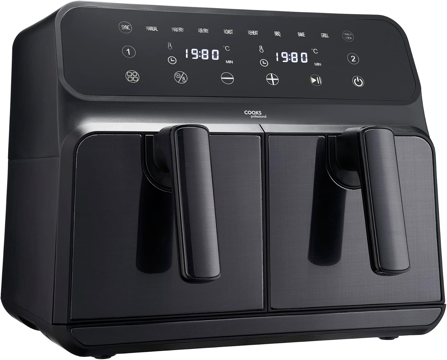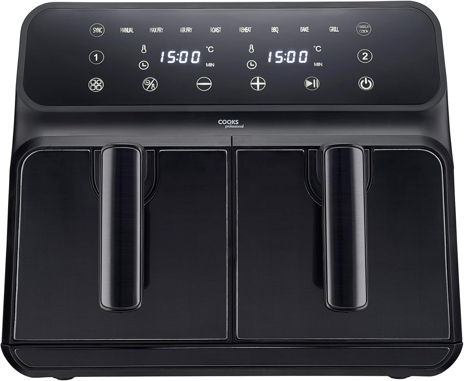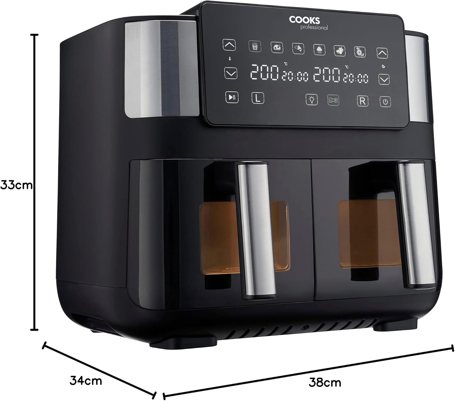 Cooks Professional 8 Litre Dual Digital Air Fryer with Double Twin Basket | Stainless Steel Energy Saving Instant Fryer with Double Drawers & Preset Functions | 8L Capacity (XL) | Black
