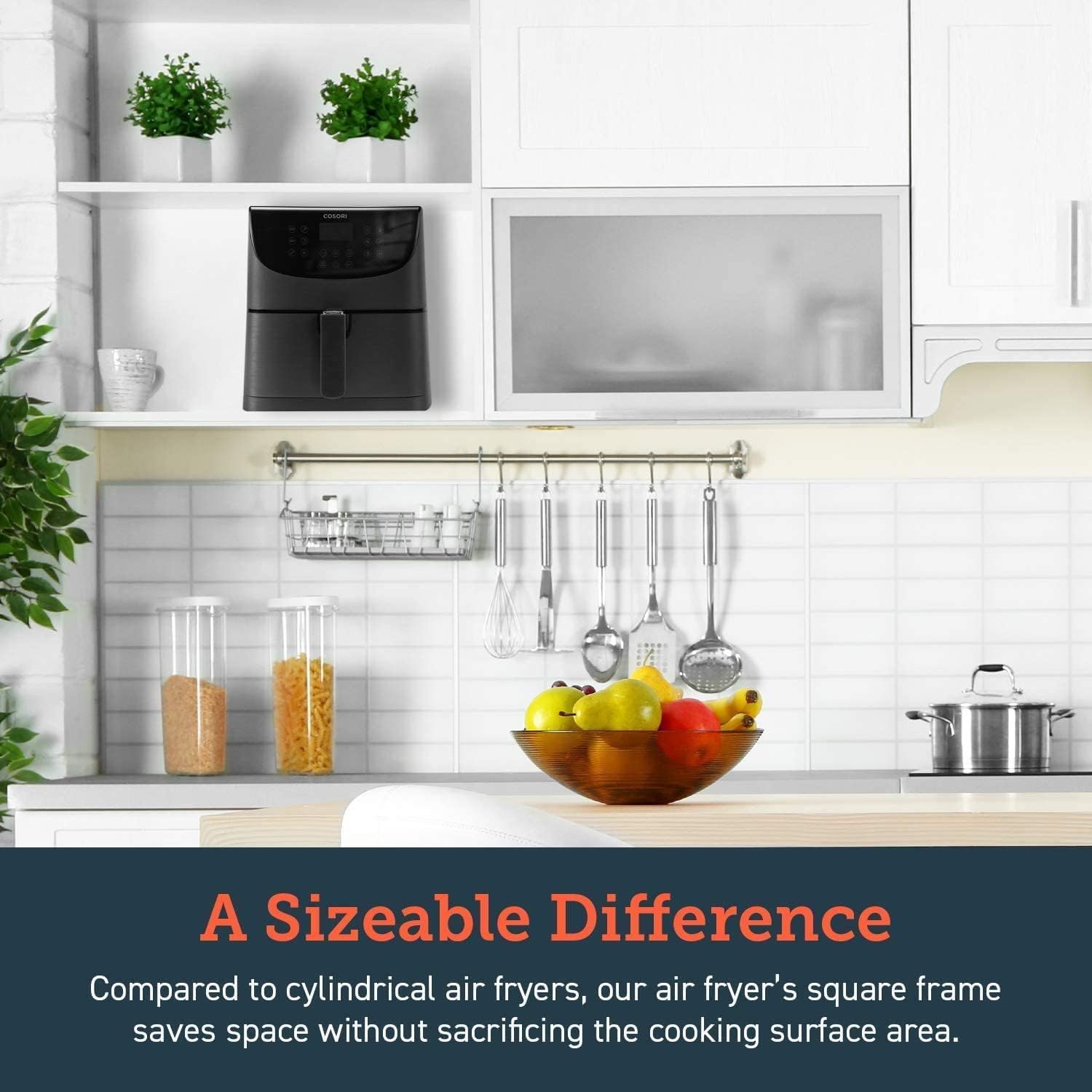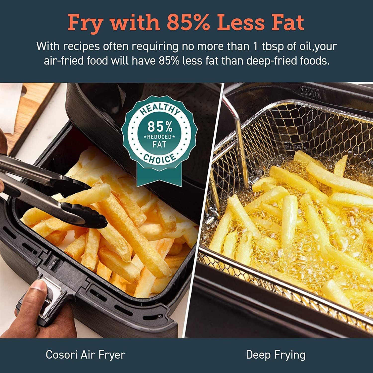 - ??Healthier & Faster Cooking??With rapid air circulation, COSORI air fryer provides you with faster cook and up to 85% less fat food while the same tasty and crispy texture using little to no oil