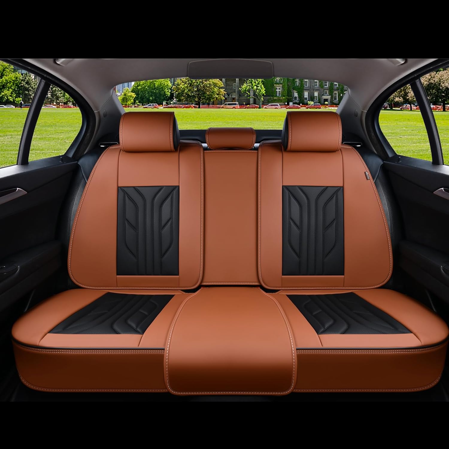 - ??Universal fit??Our leather seat covers are universal manufactured, compatible with most Cars, SUV, Truck and Pick-up. Each pack comes with 2 front seat covers and 3 rear seat covers(Includes headrest cap)