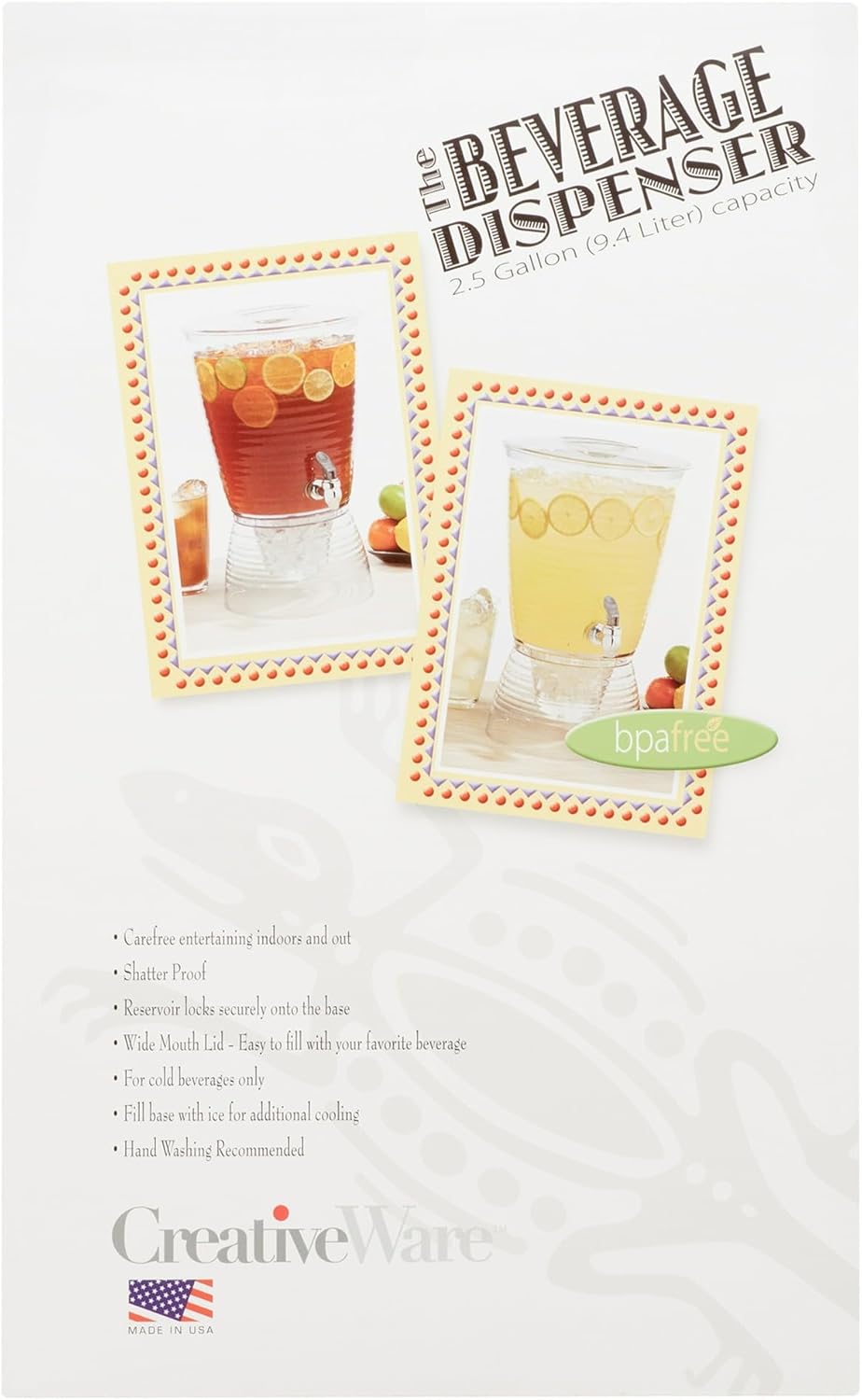 - 2.5 GALLON CAPACITY: Holds up to 2.5 gallons of your favorite beverage. Include compartentalized ice base for extended cooling