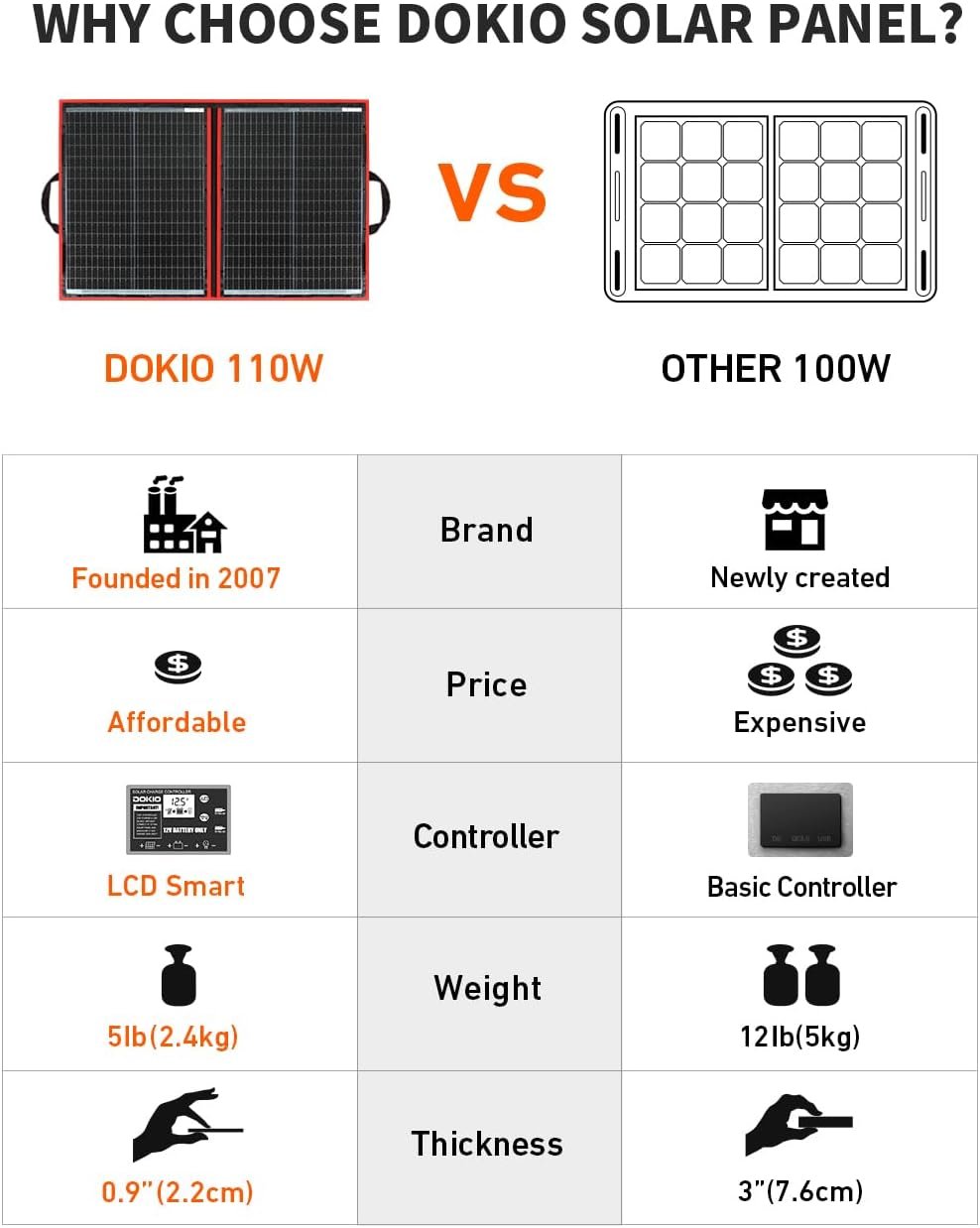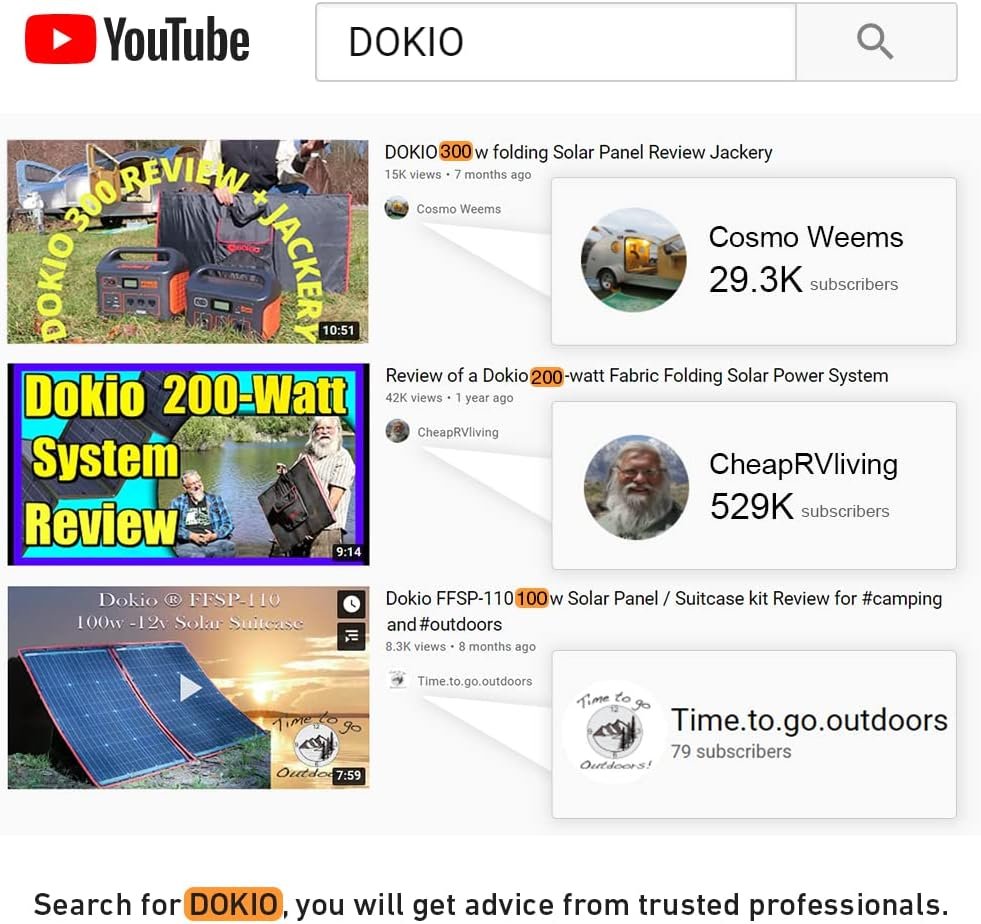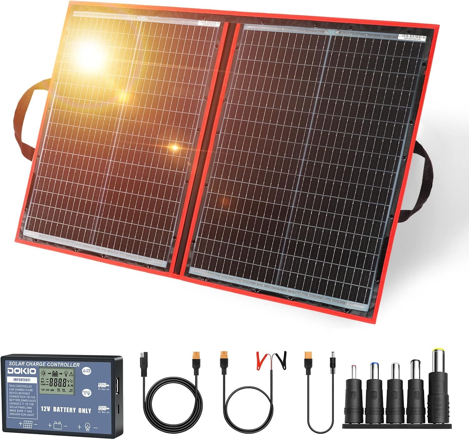 DOKIO 110w 18v Portable Foldable Solar Panel Kit,Solar Controller 2 USB Output