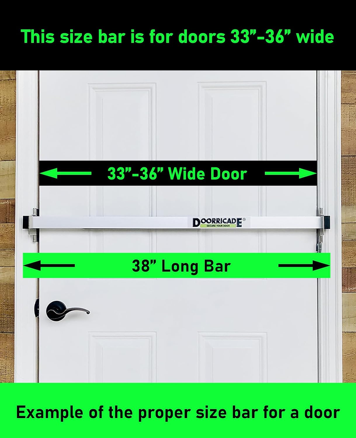 - ??Safe Room Compliant??Not Just for Front Doors, Turn Any Bedroom or Closet in Your Home, With an Inward Opening Door, Into a Safe Room. We want to make sure you are ordering the right size bar for your door. Example: If you have a 35 1/4″ wide door, you will need a 38″ long bar. The bar needs to be at least 2″ longer than the width of the door, so the bar can overlap the brackets. If you need assistance with size sellection, contact us at (888)806-1118.