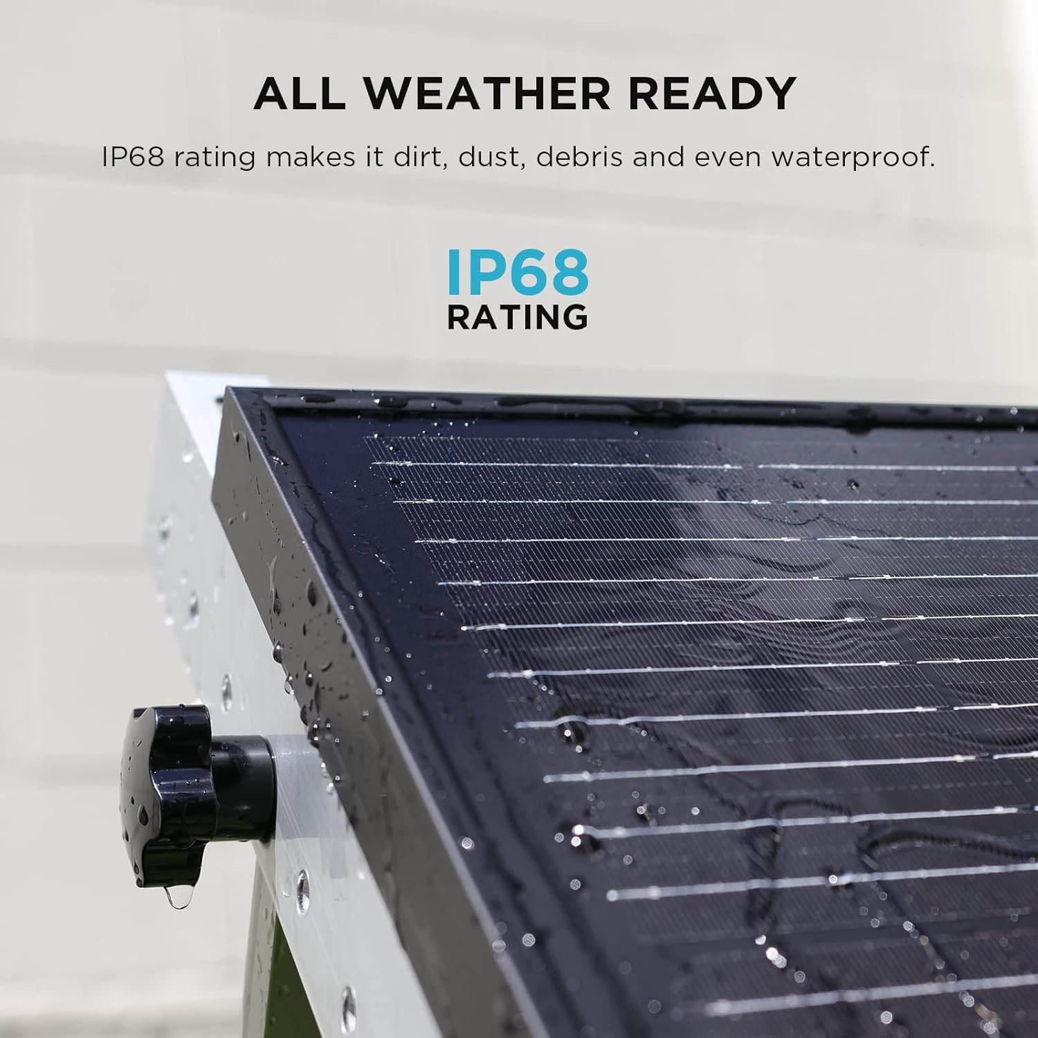 - All weather ready – With IP68 waterproofing, your solar panels are dustproof, debris proof, and even ready for heavy rain and wind.