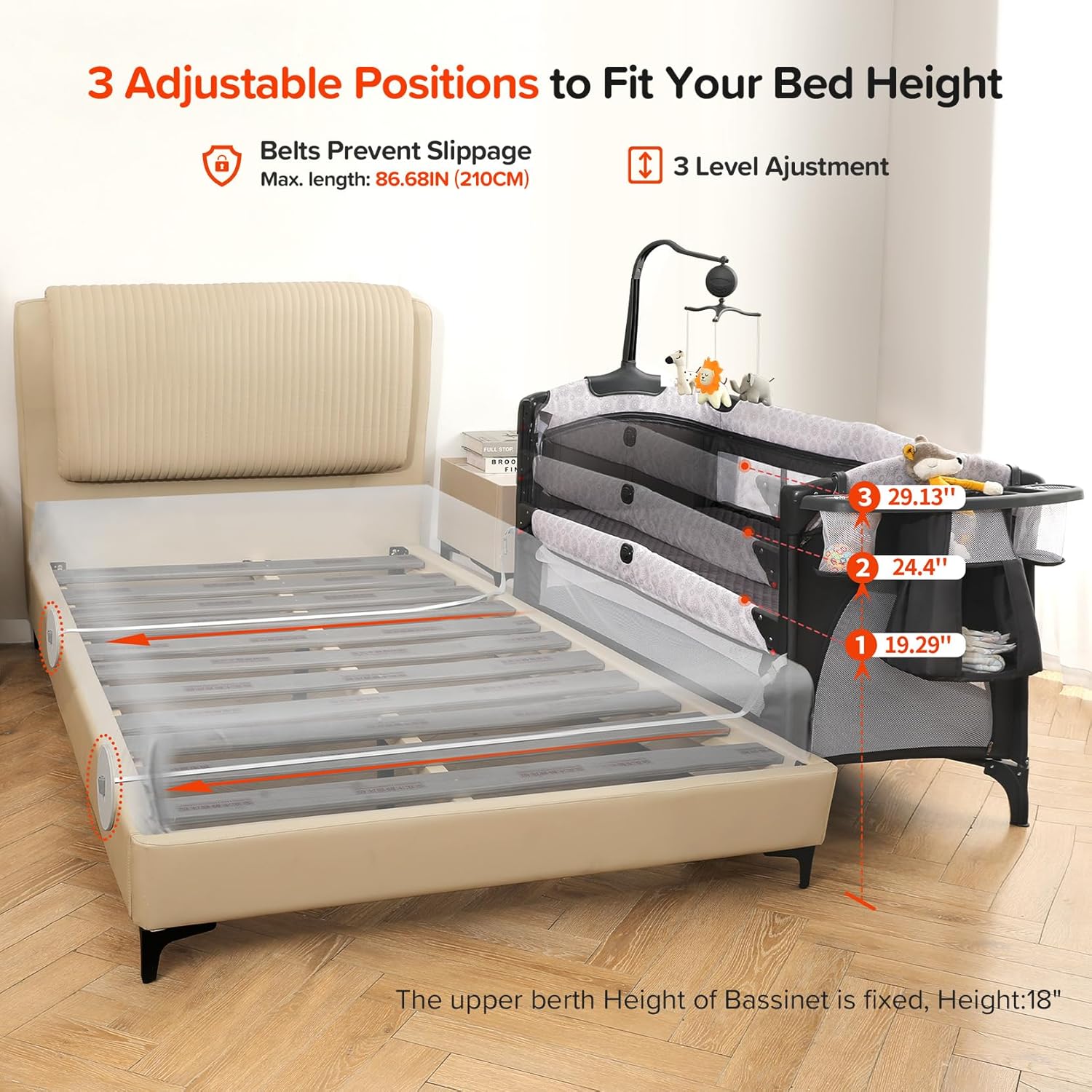 - ????????’?? ?????????? ?????????? – ELEMARA baby bassinet has 3 adjustable heights 29.2″/24.4″/19.3″ to choose from to help mom take care of her baby without having to stand up. No need to walk at night, baby is right next to you.