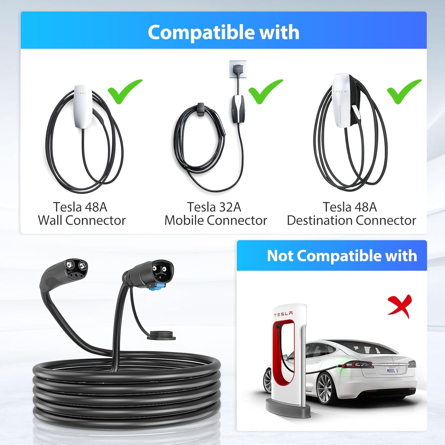 - COMPATIBLE WITH MODEL 3/Y/X/S – Charge your ev car with ease using this extension cord charging cable, designed specifically for use with High Powered Wall Connectors, all generations of Destination Chargers, and Mobile Connectors.