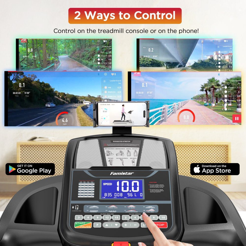 • MADE FOR PERFORMANCE – Compared to other ordinary treadmills, Famistar all-round treadmill highlights 15 Levels Power Incline, Up to 16KM/H(10MPH) Adjustable Speed, 4.5HP Powerful and Quite Motor, APP Control, HiFi Bluetooth Speakers, 4.3?? Thickened Running Deck, 64 Preset Programs + 3 User Programs + 3 Modes, 300LB Max Capacity, Easy Assembly&Space Saving, such an outstanding comprehensive folding treadmill to meet all your needs.