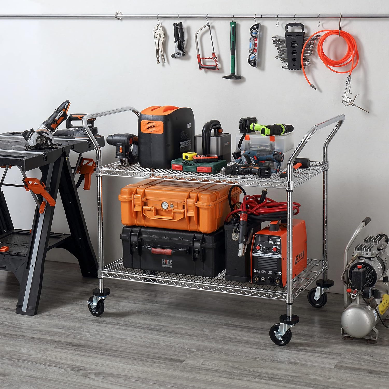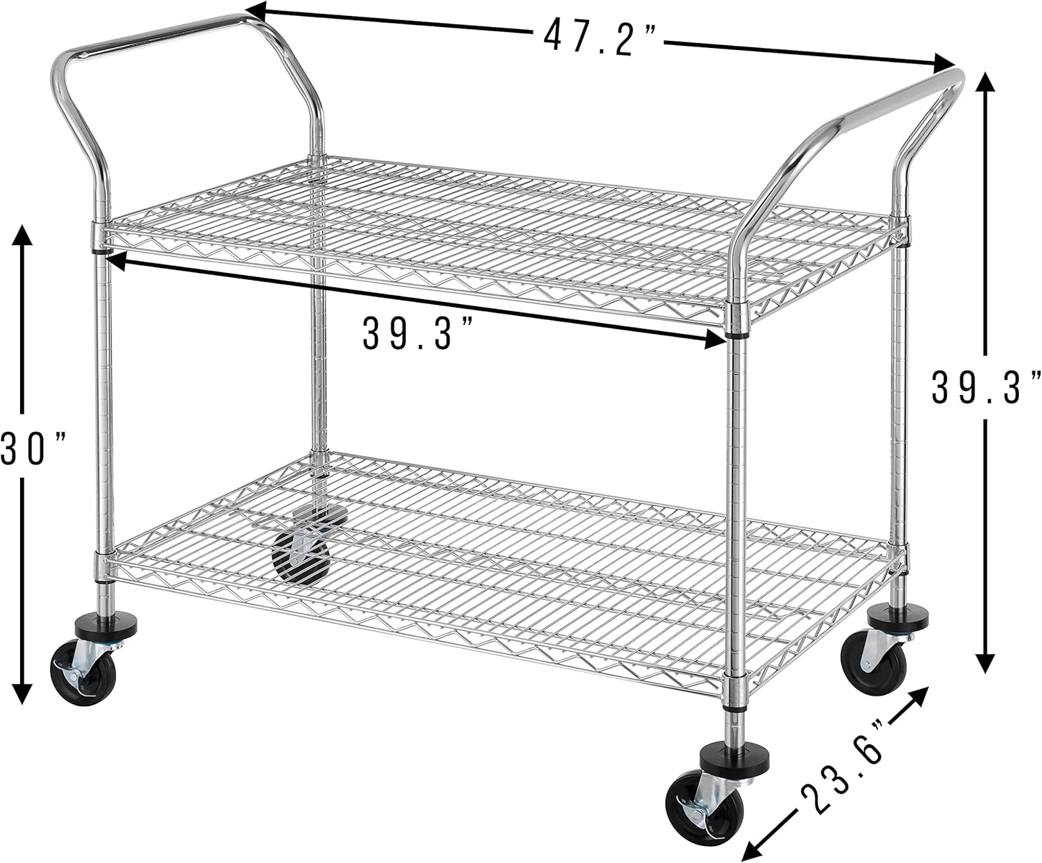 Finnhomy 2-Tier Commercial Grade Rolling Cart with Wheels and Handles