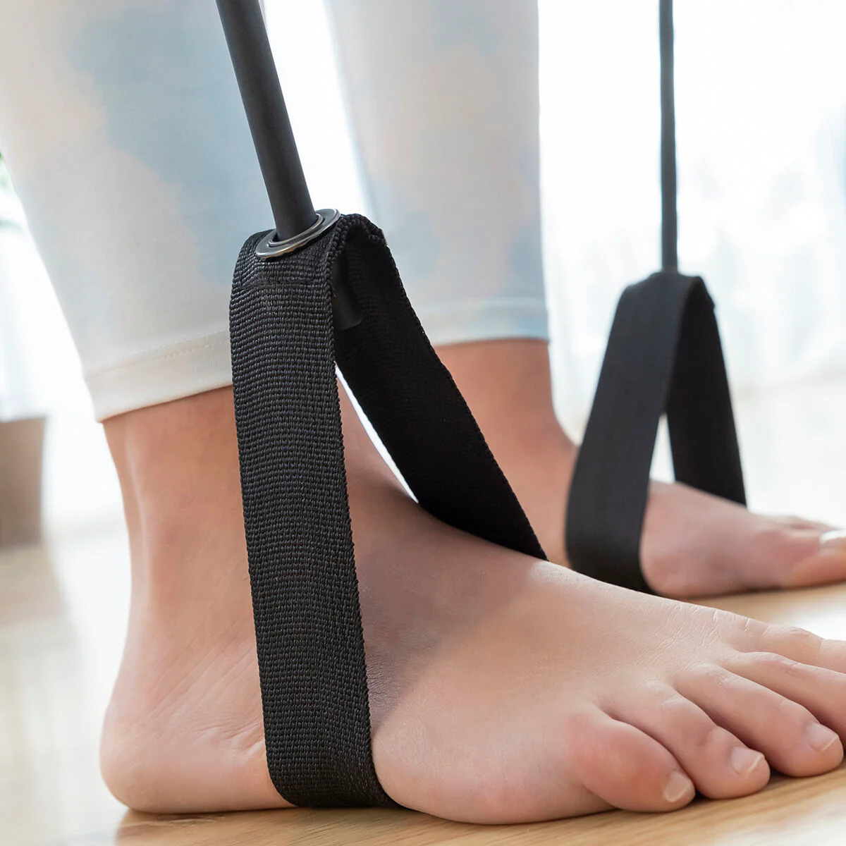 A fitness bar with elastic resistance bands and exercise guide which enables you to do a full workout with a wide variety of exercises and stretches to work the 4 main muscle groups (torso, arms, legs, back). Because of its versatility, it can be used in many positions (standing, lying down…) and for different sports disciplines including fitness, yoga, pilates, etc. Ideal for strengthening and toning the body muscles (abdominals, arms, legs, glutes, chest, waist, shoulders, back, etc.). Its lightweight, detachable and portable design makes it easy to transport and store, taking up little space, which is a huge advantage for getting fit without the need to accumulate bulky gym equipment. This modern, multifunctional training bar with tensors is ergonomic, unisex and suitable for all levels (from beginners to professionals). In addition, it is very robust thanks to the inner metal tube and provides a firm grip with its non-slip coating. Includes 2 elastic bands, 2 gripping handles for hands or feet and a high level of resistance (up to 31.75 kg / 70 lb). Perfect for exercising at home, although it can also be used outdoors.