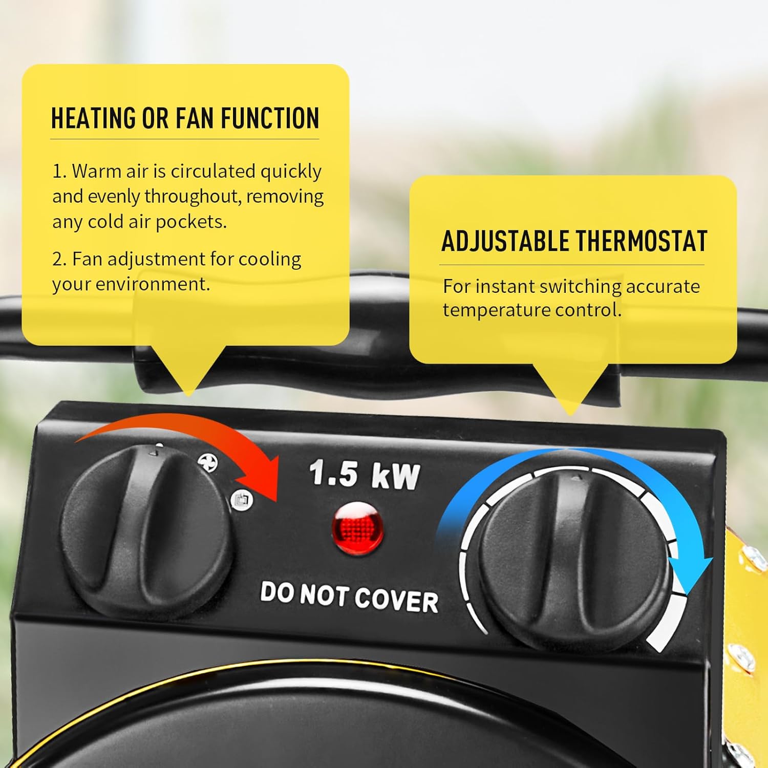 - ??Versatile Heating Options??: The fan heater offers versatile heating and fan modes, with a 25W fan mode and a 1500W heat mode. This flexibility allows you to adjust the temperature according to your specific needs, making it suitable for various applications such as greenhouses, grow tents, milk sheds, garages, and workshops. Additionally, it features a professional waterproof temperature probe for accurate temperature control and protection against overheating.