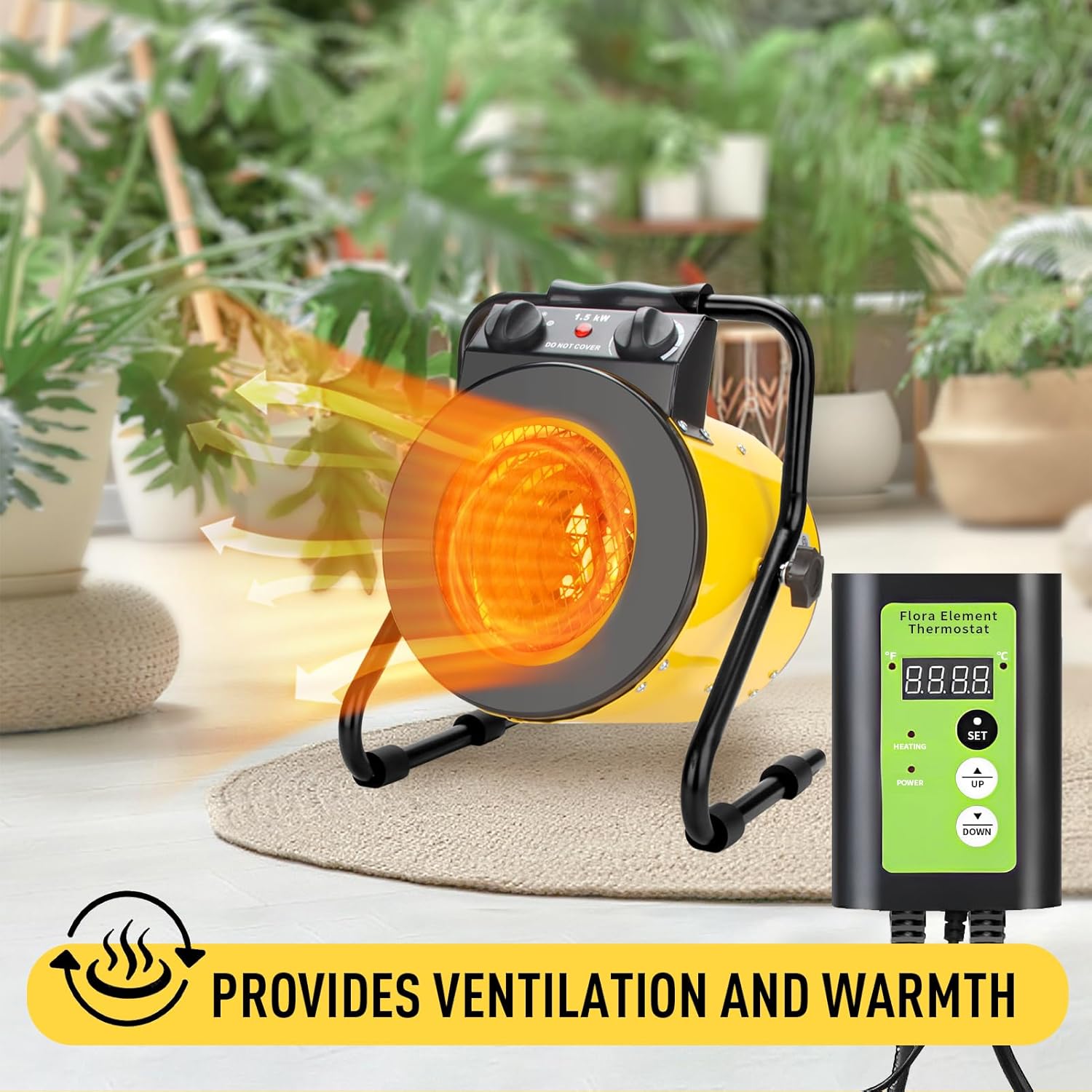 Flora Element Greenhouse Heater with Digital Thermostat,Electric Portable Heater Fan