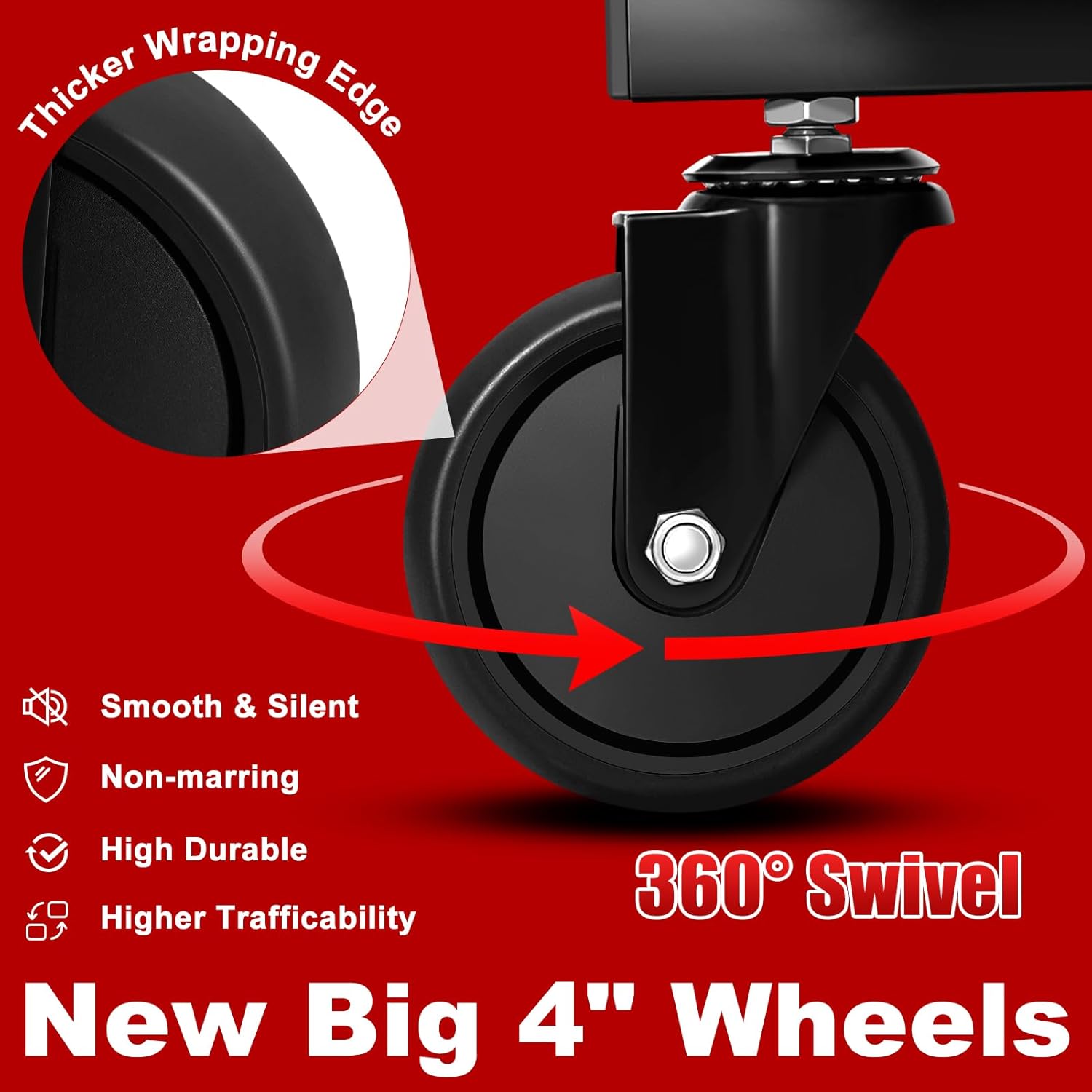 - ??4 Inch Big Wheels??The rolling stool with back support is equipped with 4 pieces 360??movable wheels which are 4″ Diameter. Smooth-rolling casters enhance mobility, easily over cracks and debris on floor