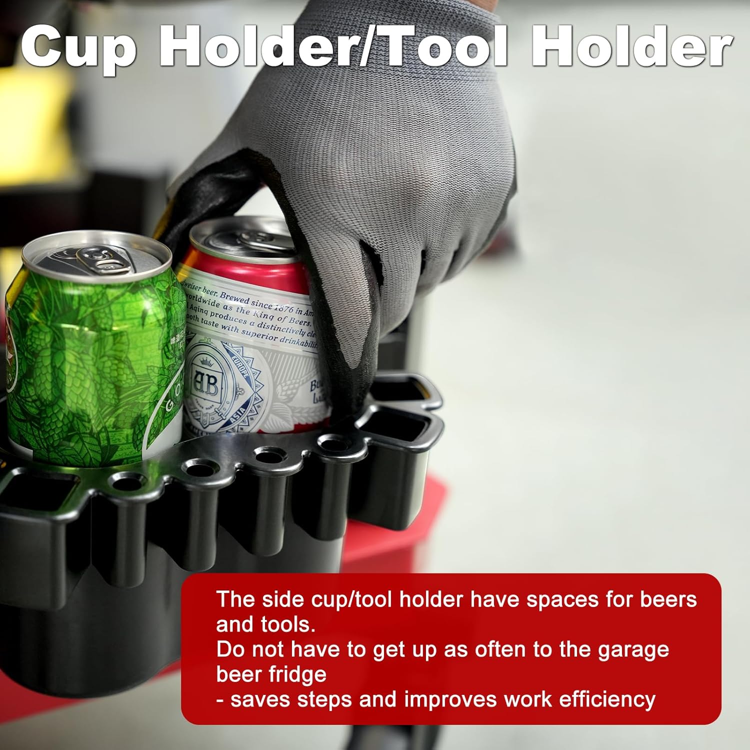 - ??ONE tool tray & TWO cup holders/tool holders??The garage stool has a very good storage function. There is a tool tray and two cup holders/tool holders. At the same time, the tool tray is equipped with a small partition space. You can put small tools like screws here. When you move, do not worry about the screws slipping out of range. It is convenient to store and access necessary tools and parts at anytime