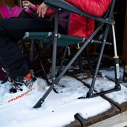 • Portable. folding outdoor rocking chair delivers smooth rocking motion on lawns. patios. campsites. and other outdoor surfaces