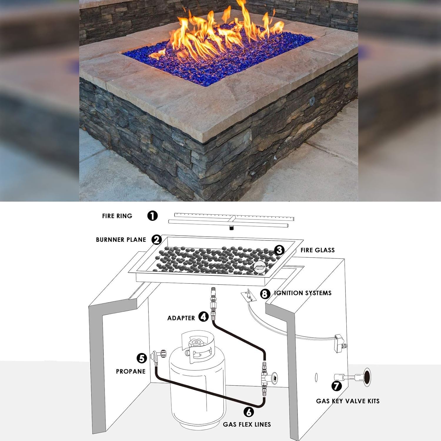 - [Nice Match] – Use decorative fire glass to make your fire pit more advanced and brilliant firelight effect. We recommend 30 pounds of fire glass for this kit.