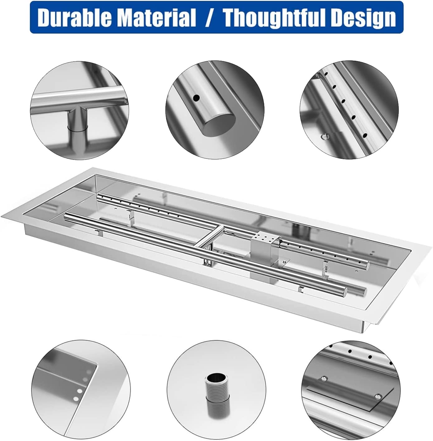 - [ANSI Certified] – Our products passed ANSI/CSA testing standards, with full assurance of safety and stability. [Material] – The fire pit burner is made of 304 Stainless Steel, and connecting parts and ignition parts are made of heavy duty materials such as brass and 304 stainless steel. They can withstand high temperatures, are not easy to bend and corrosion Resist. Ensures air tightness while being more durable and long-lasting.